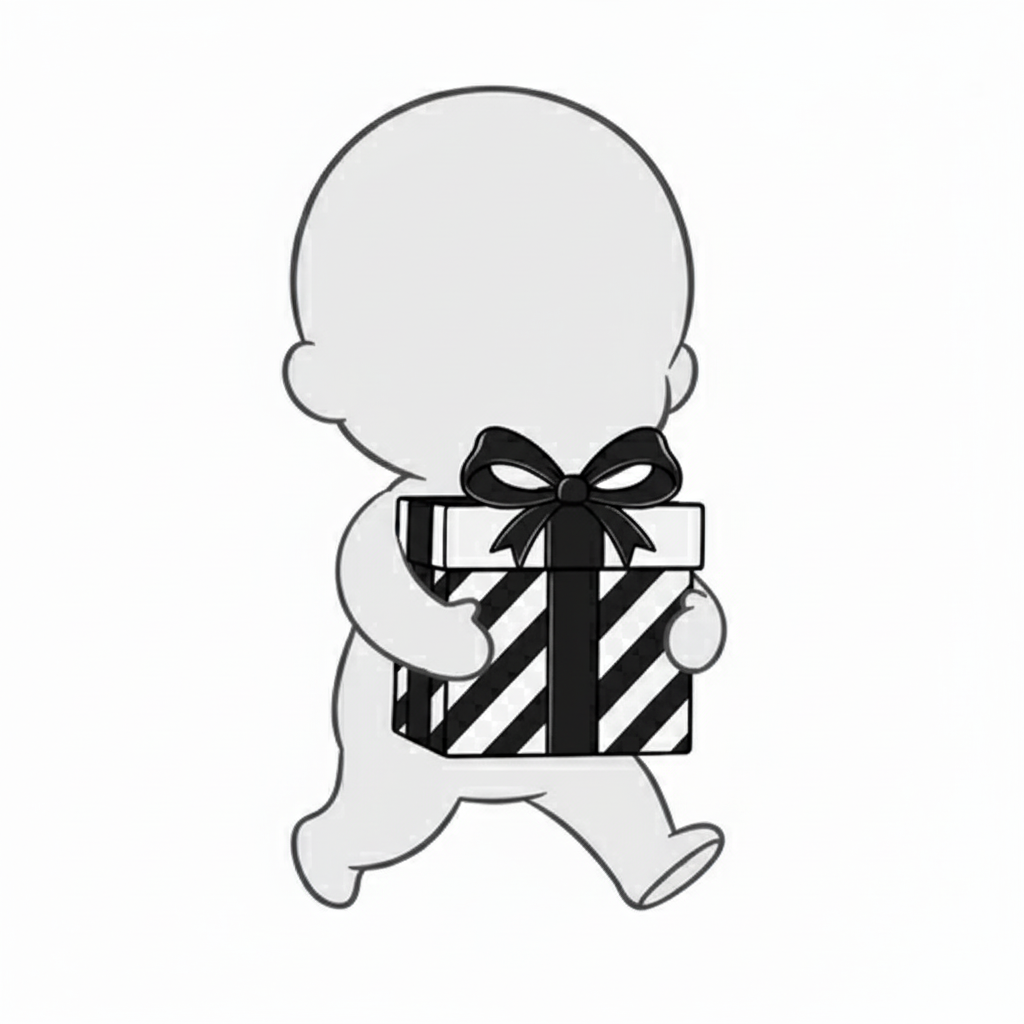 プレゼントを抱えて走る姿が、楽しいイベントやサプライズの瞬間にぴったりです。