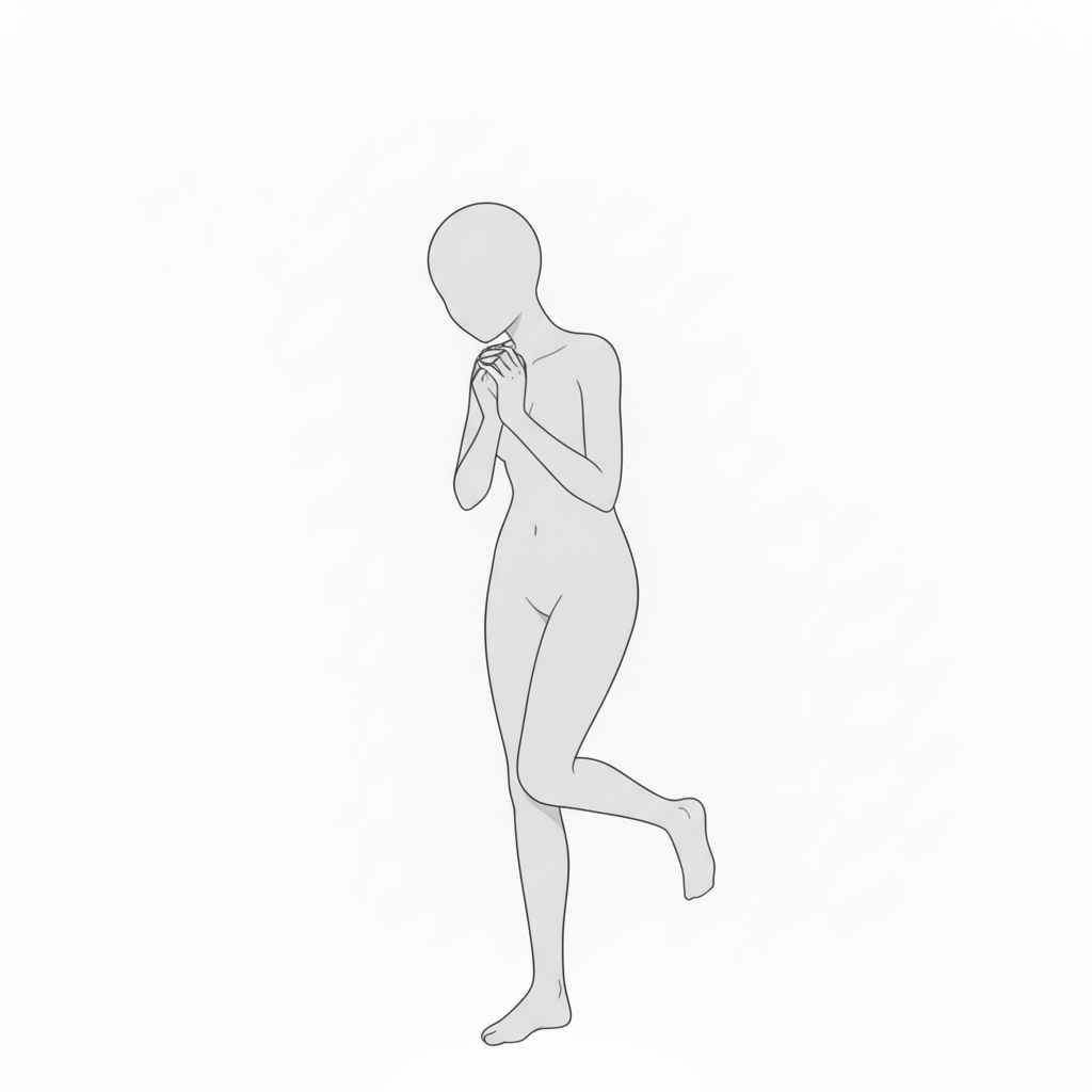 恋しさや不安を抱える瞬間を描ける、感情豊かなポーズ。