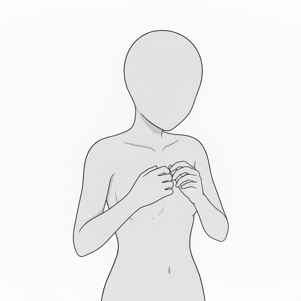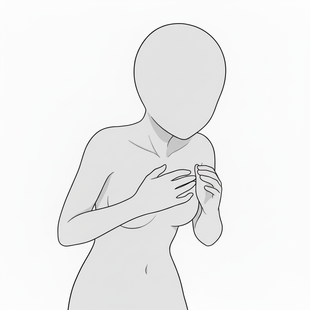 胸を押さえる恥じらいポーズ