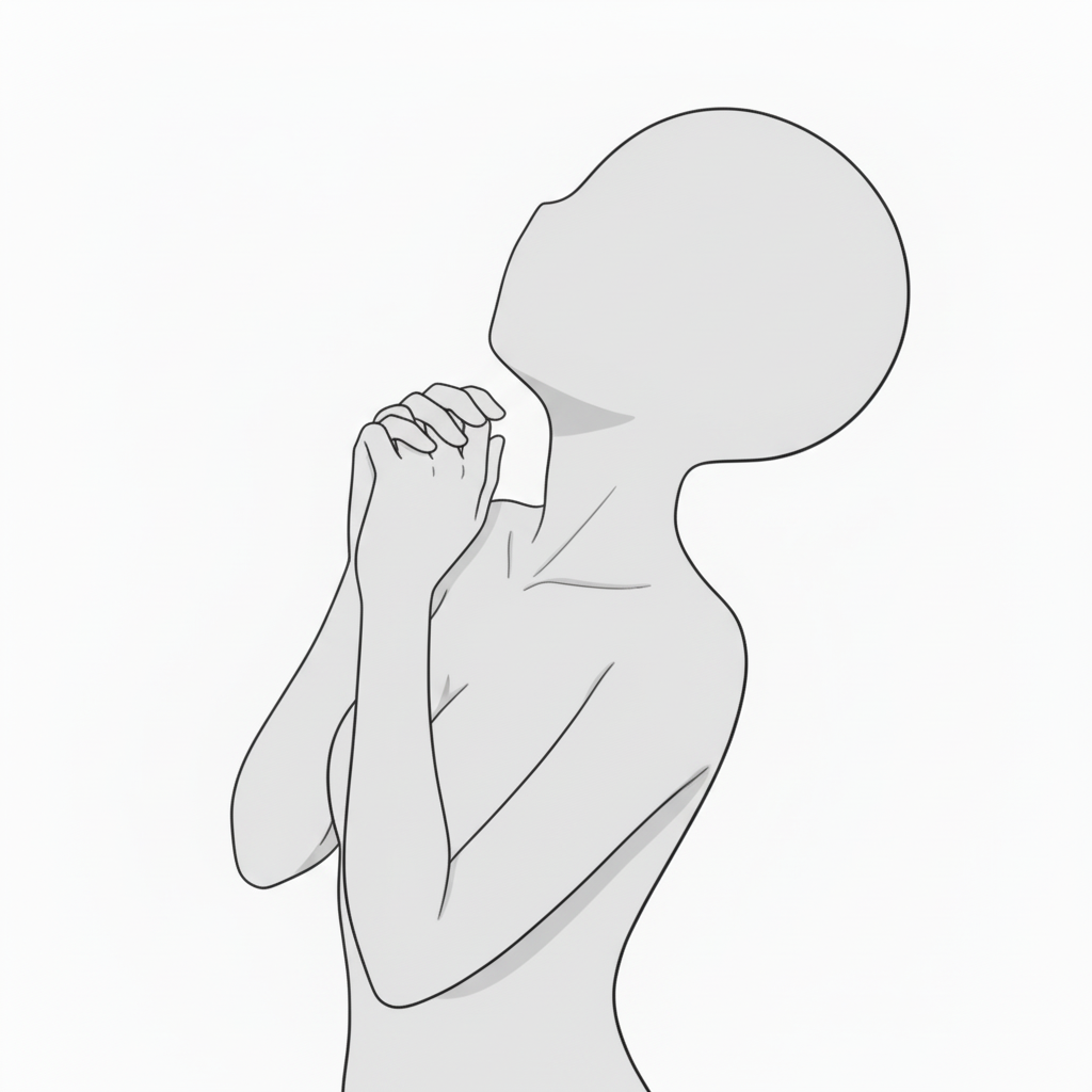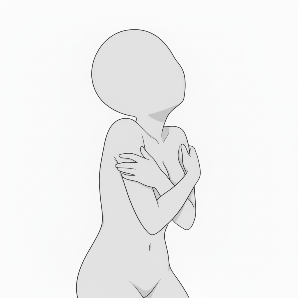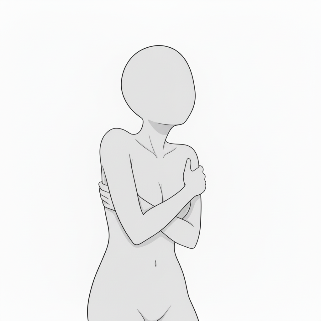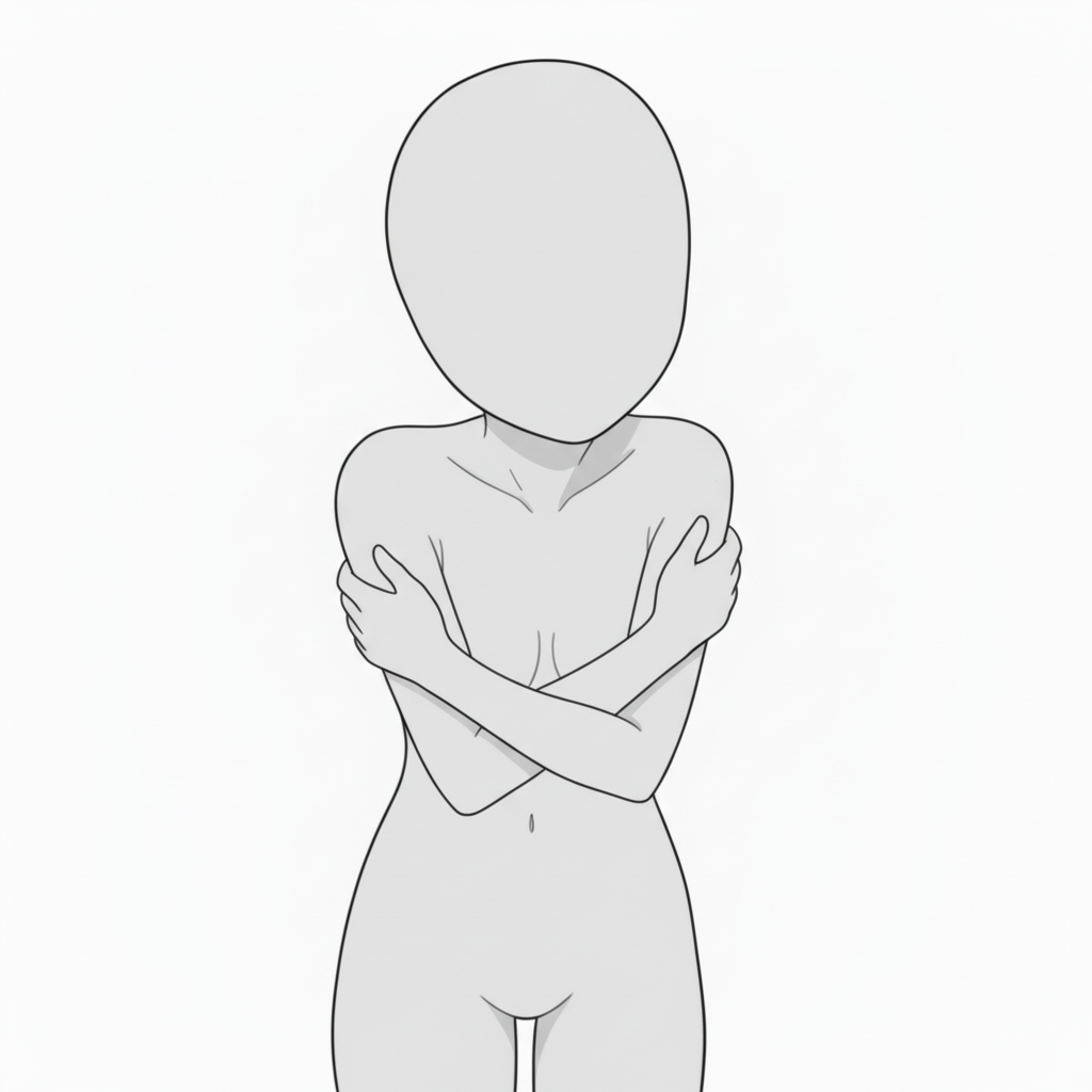 両腕で抱きしめる切ないポーズ