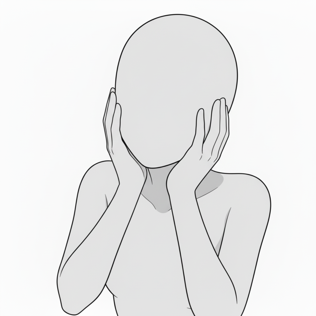 衝撃を受けた瞬間を表現できる定番リアクション構図。感情シーンの練習に最適。