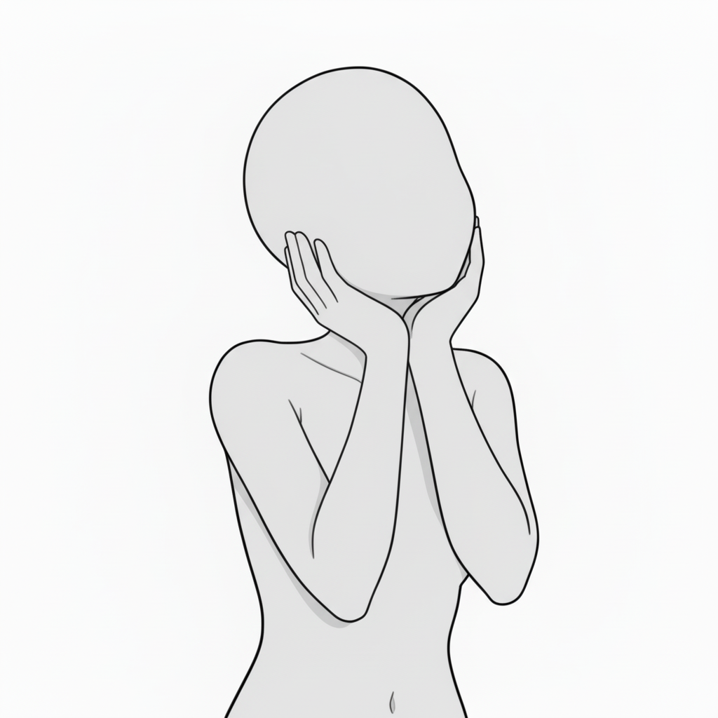 両手で頬を包むときめきポーズ