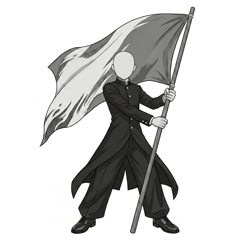 落ち着いた構えで応援団らしい威厳を表現できる立ちポーズ素材です。