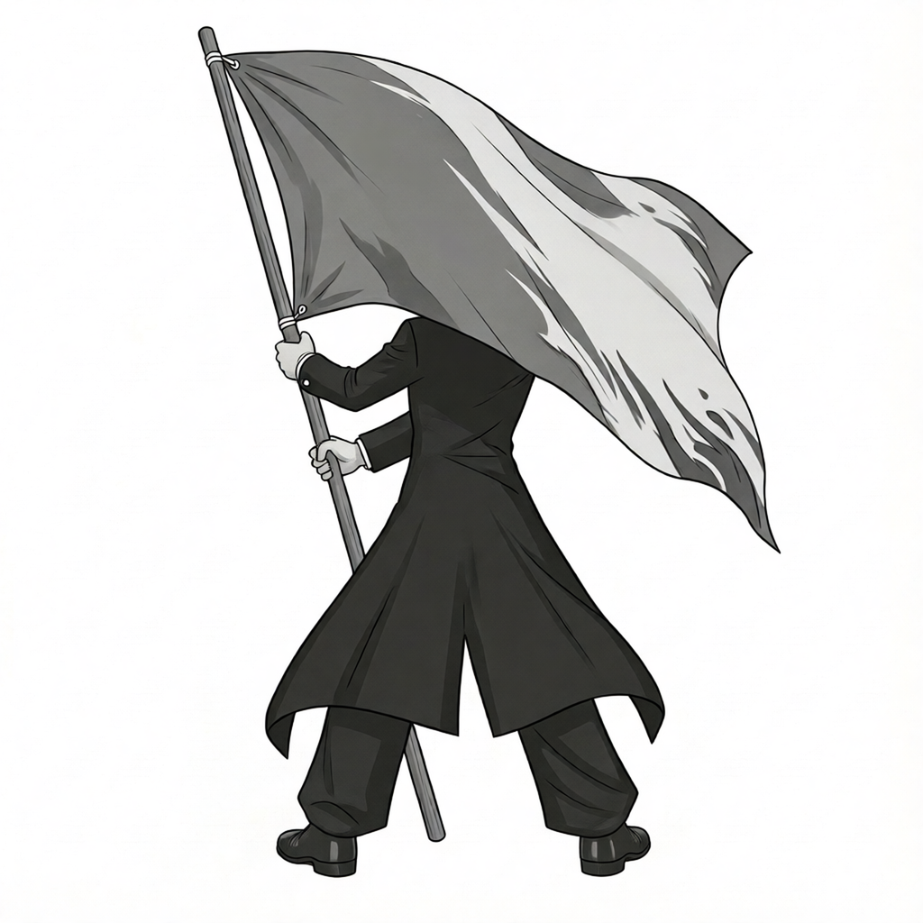 後ろ向きで旗を持つ応援団員|背面ポーズ線画素材