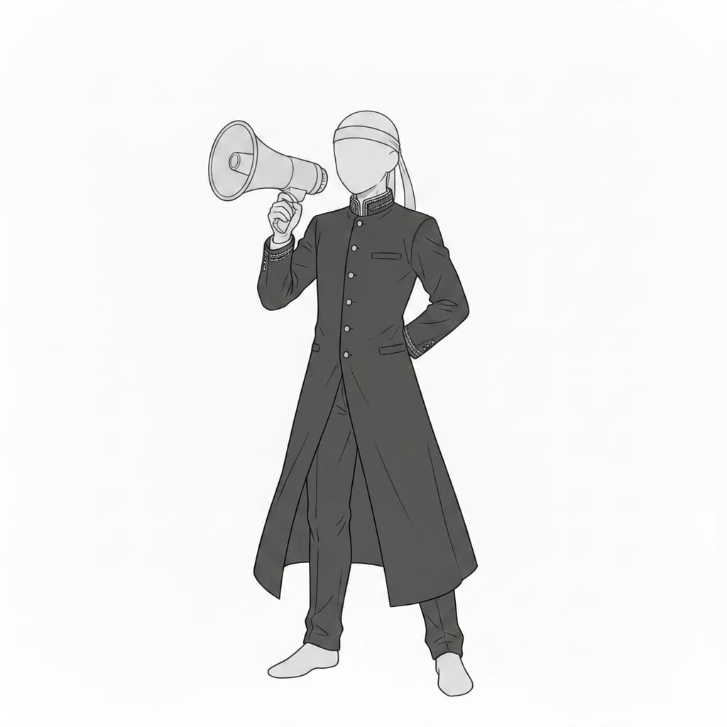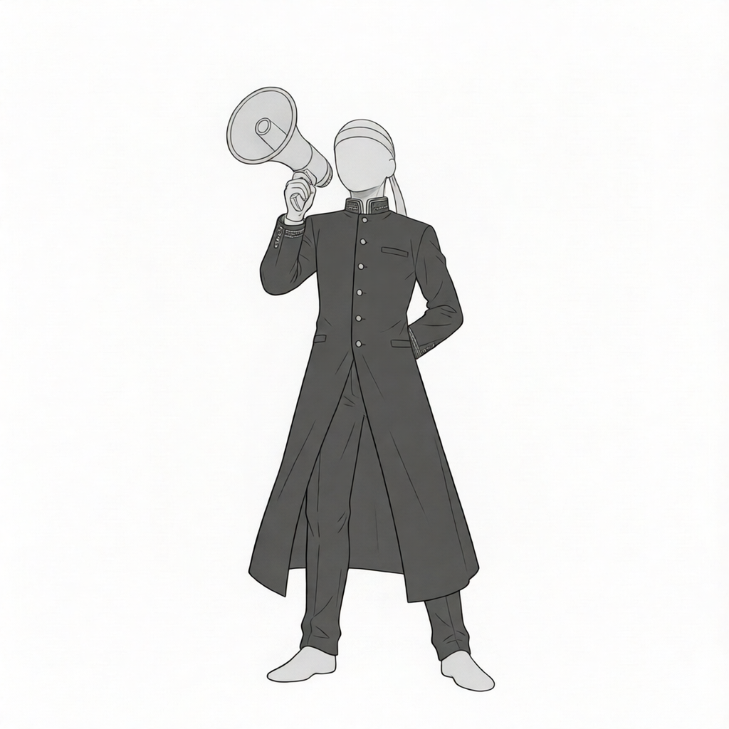 正面でメガホンを持つ応援団|基本ポーズ線画素材