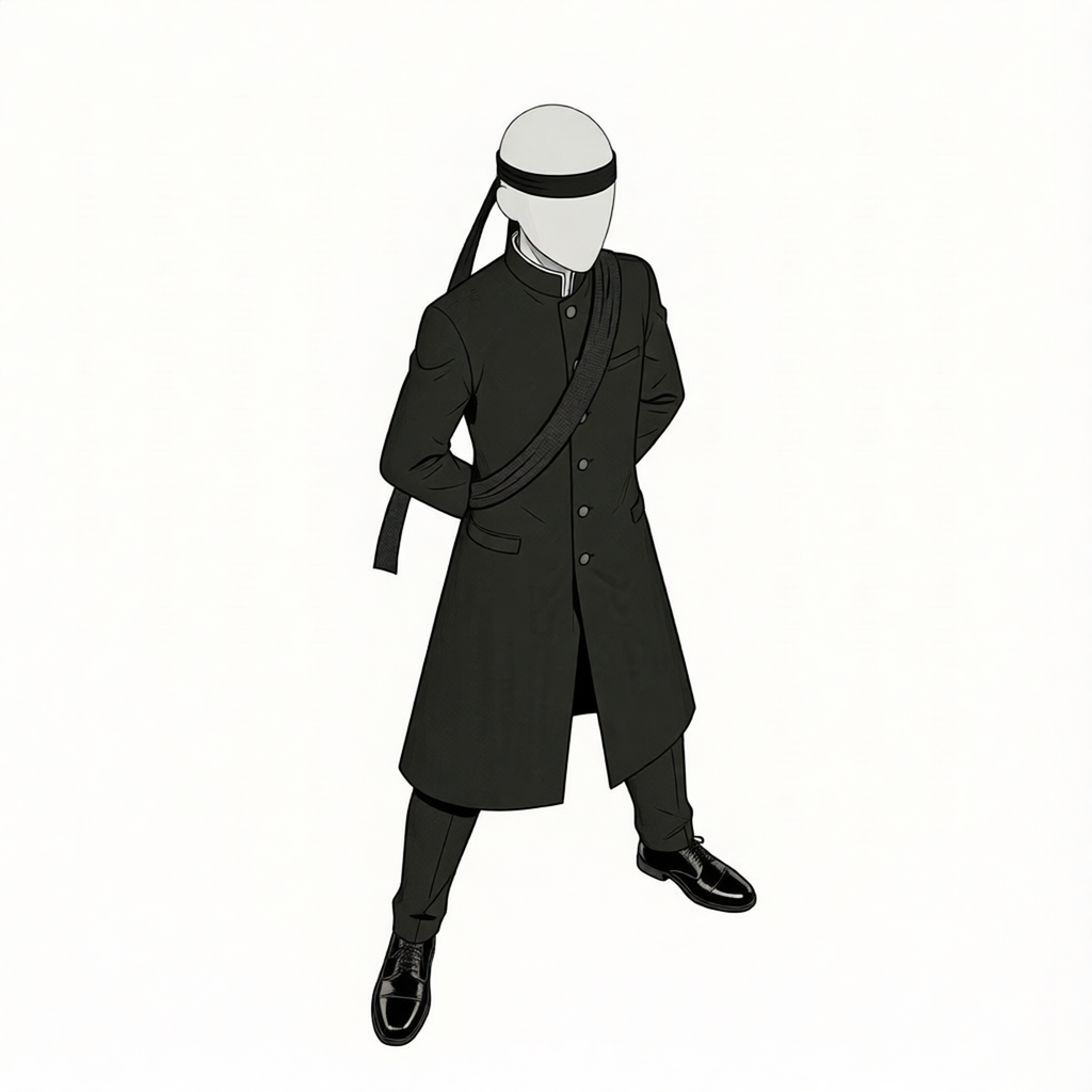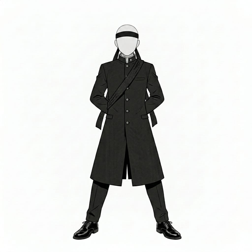 斜め立ちで腕を後ろに組む応援団員|バリエーションポーズ線画素材