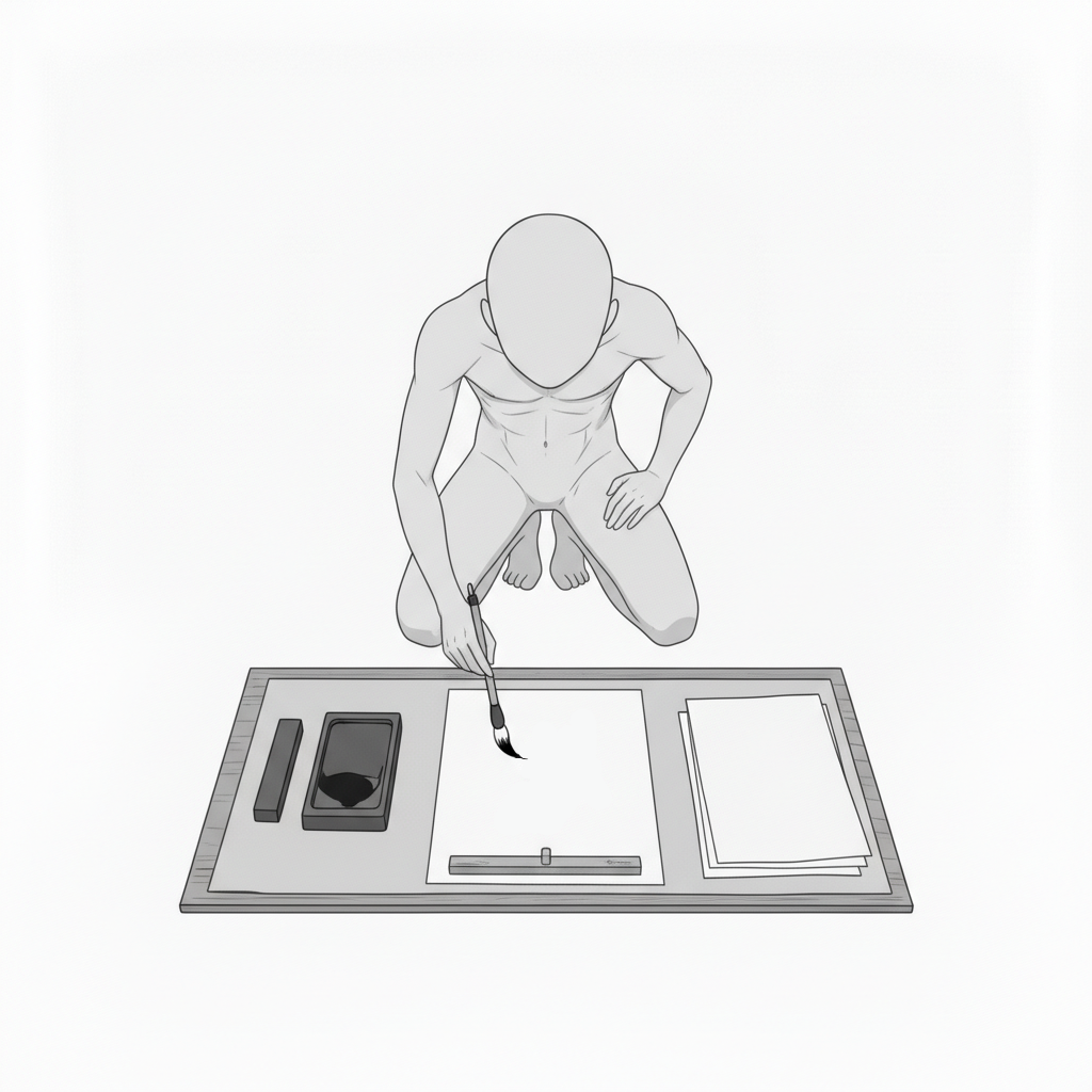 書道ポーズ集|正座で筆を構える基本姿勢