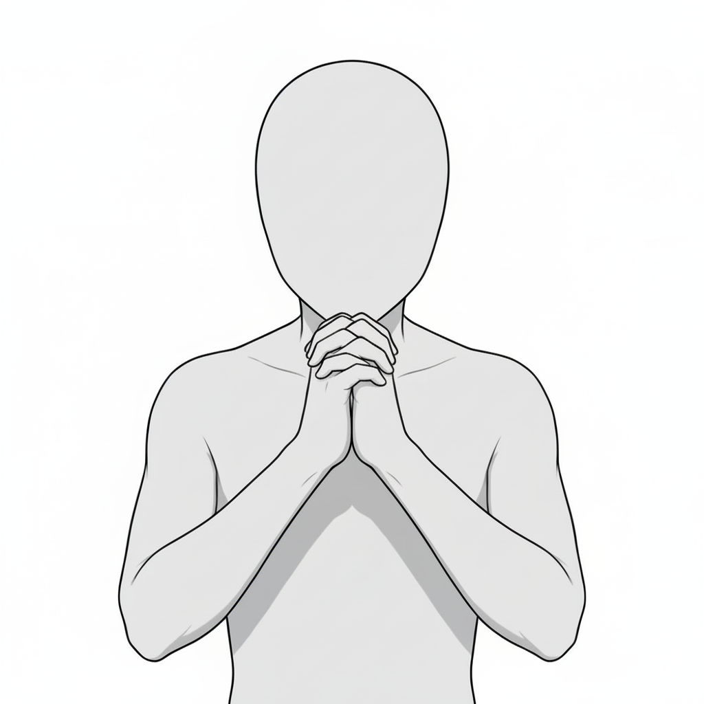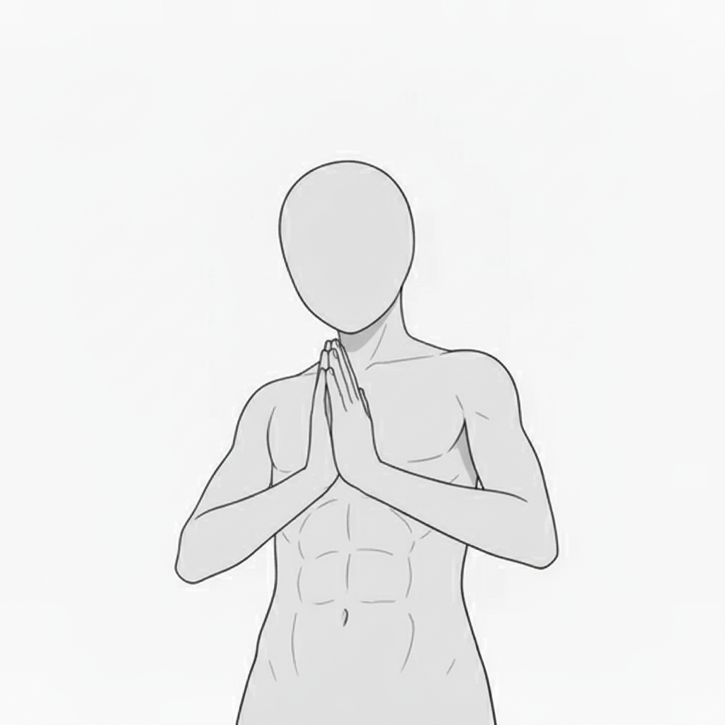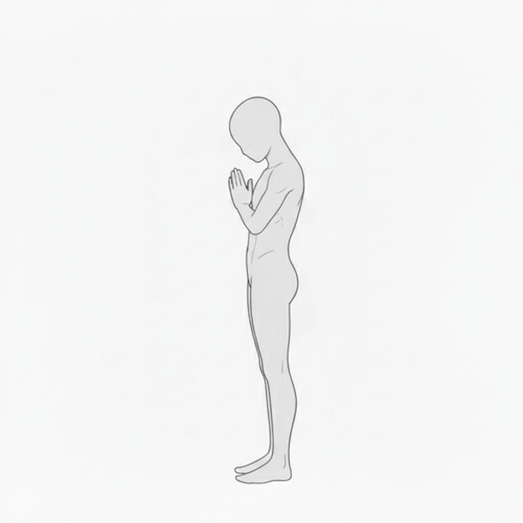 合掌する男性の祈りポーズ|正面立ちの基本形