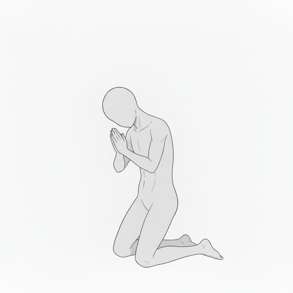 跪いて祈る男性|ひざまずきの祈願ポーズ