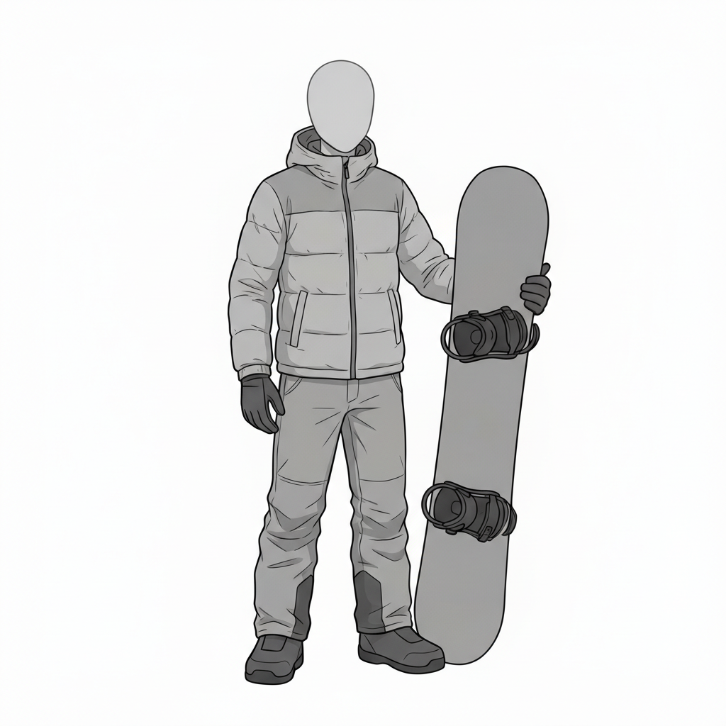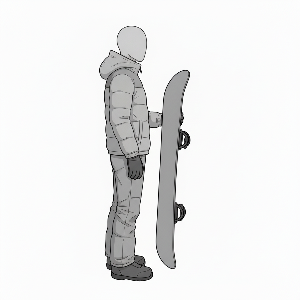 スノーボードを持って立つ男性ポーズ|待機・準備シーン素材