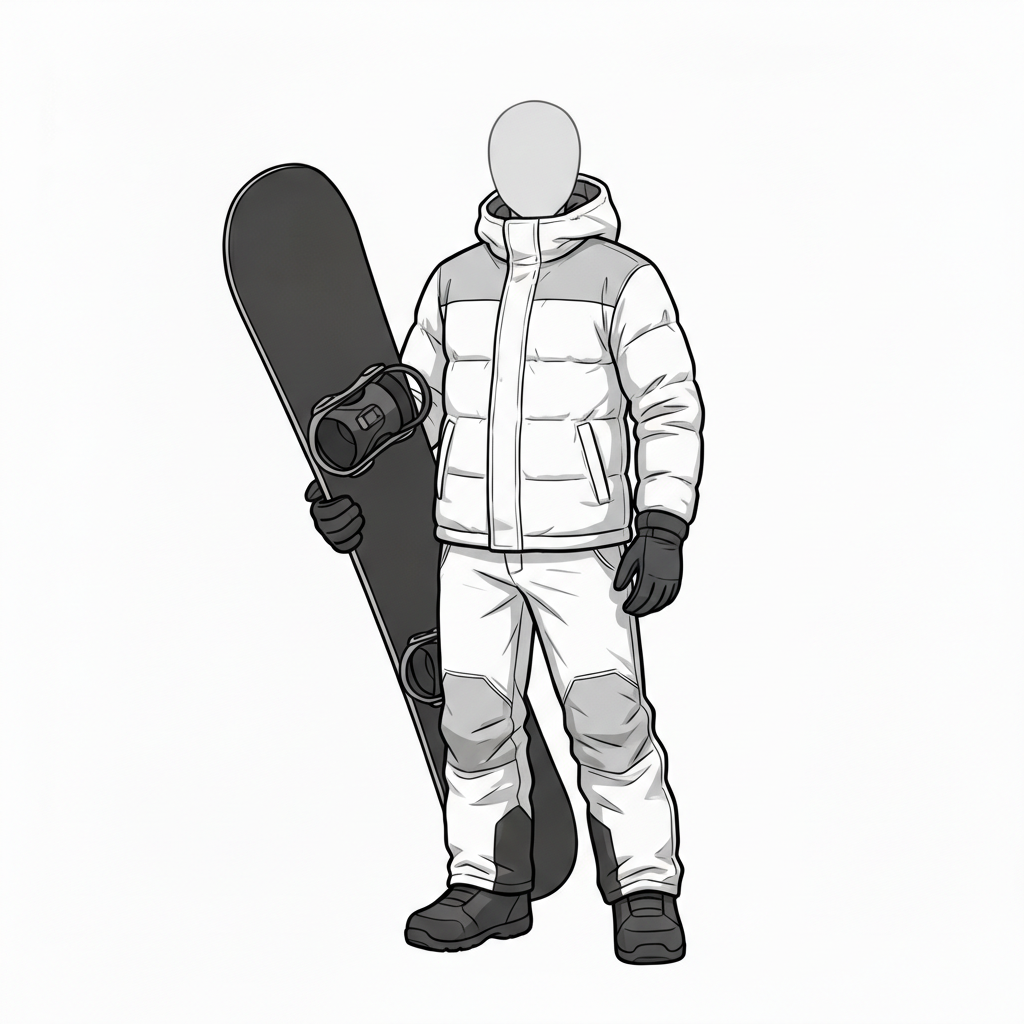 ベーシックなスタンスを押さえた、初心者〜汎用向けの男性スノーボードポーズ素材です。