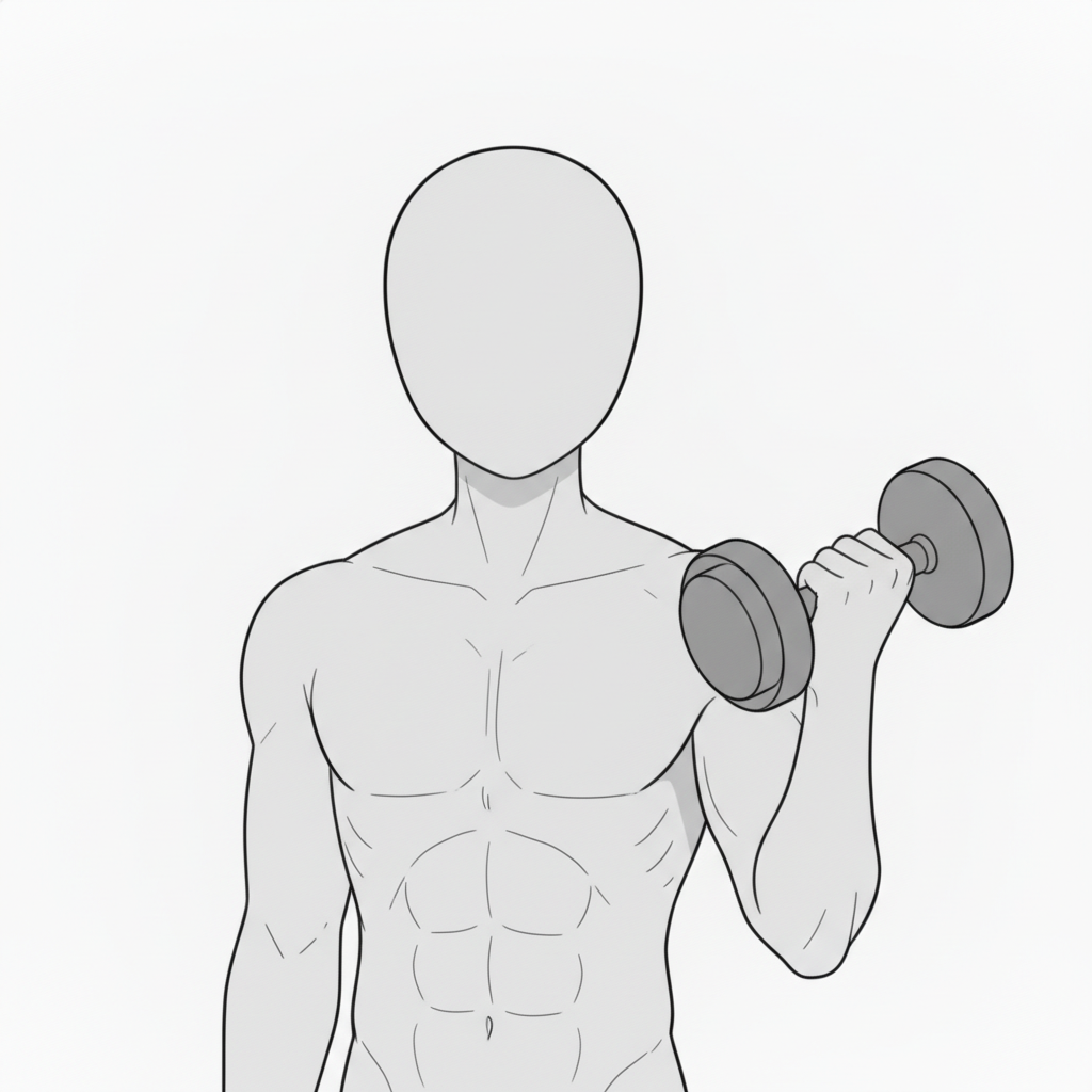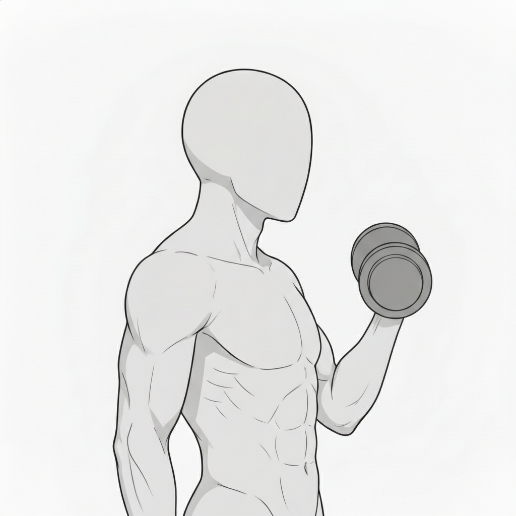 ダンベルカール横視点|筋肉量を強調する男性ポーズ