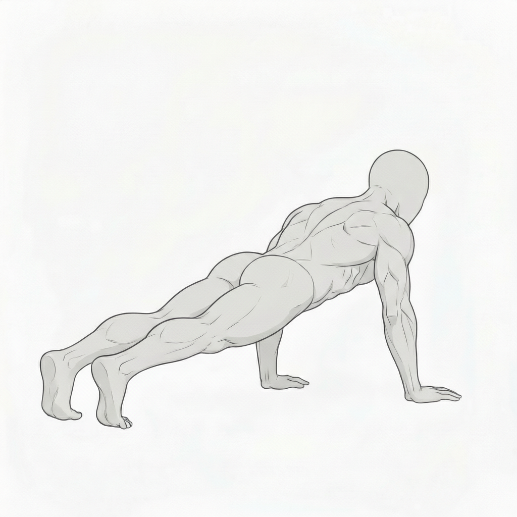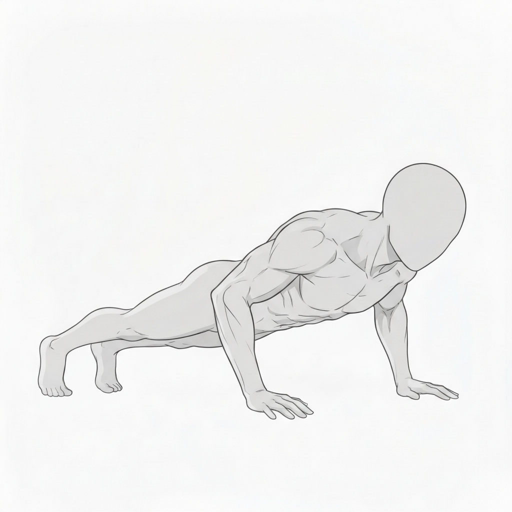 正しい腕立て伏せ姿勢が、全身の筋緊張や安定感を描写できます。