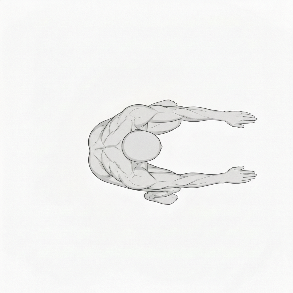 上から見下ろす構図により、背中や肩周りの筋肉配置が把握しやすいです。
