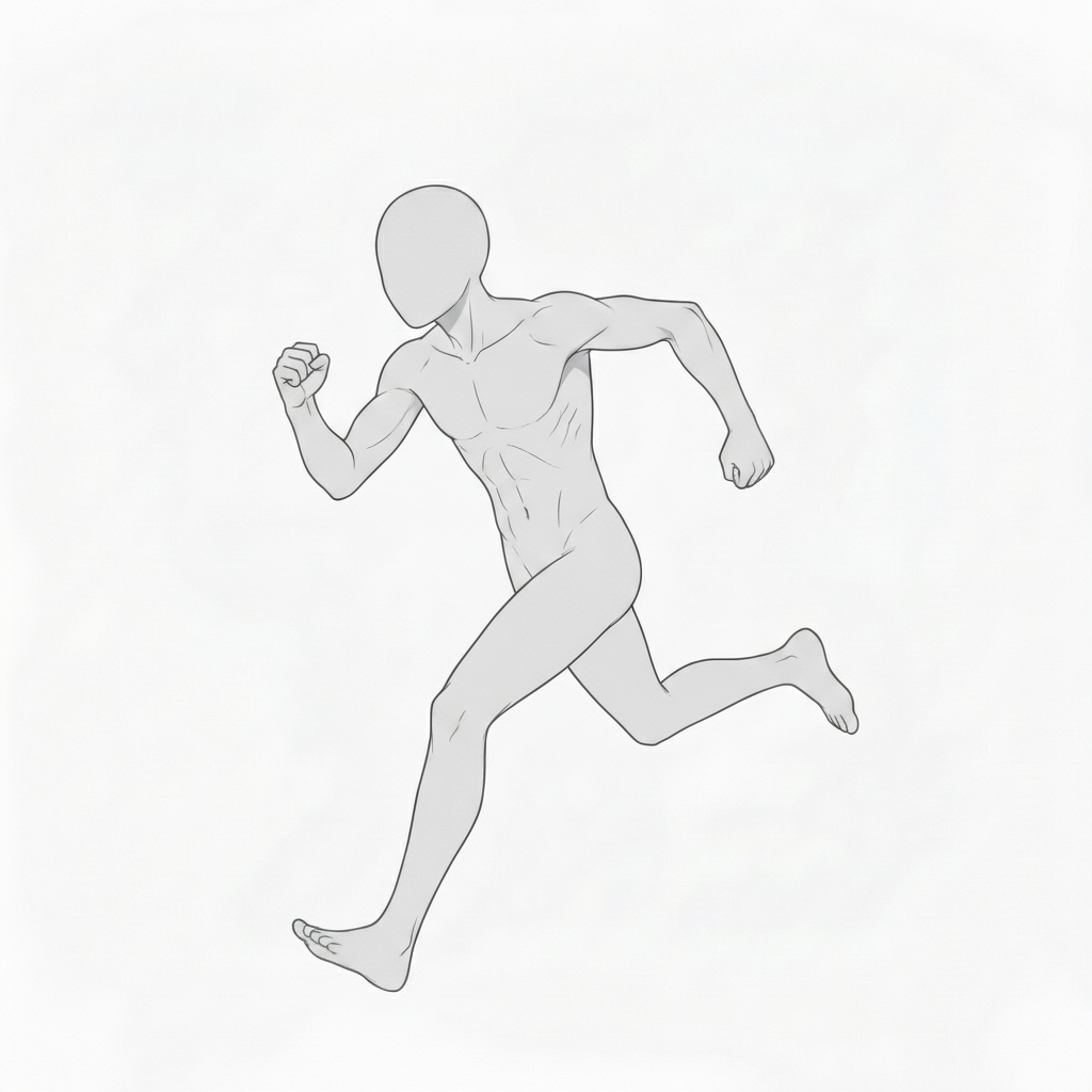 背面からの走行姿勢が、全身の筋肉連動を自然に表現できます。