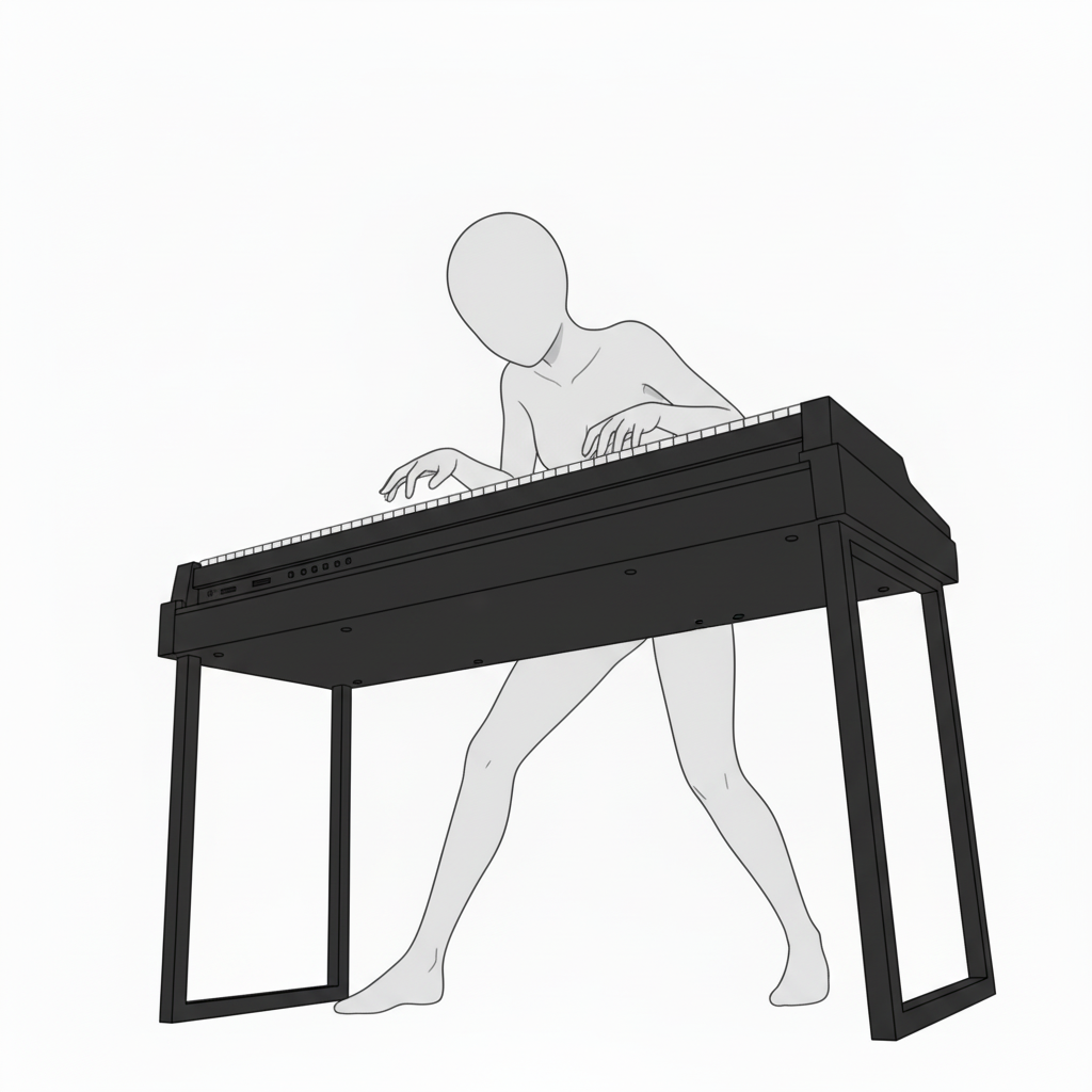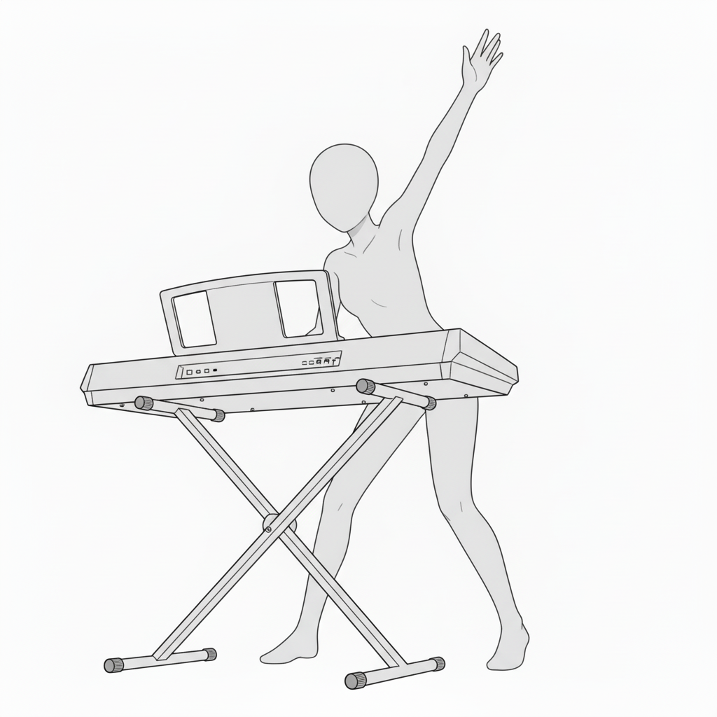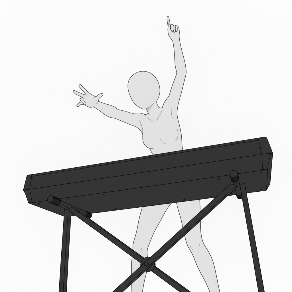 上体を傾けたキーボード演奏ポーズ|リズムを感じる動きの表現に