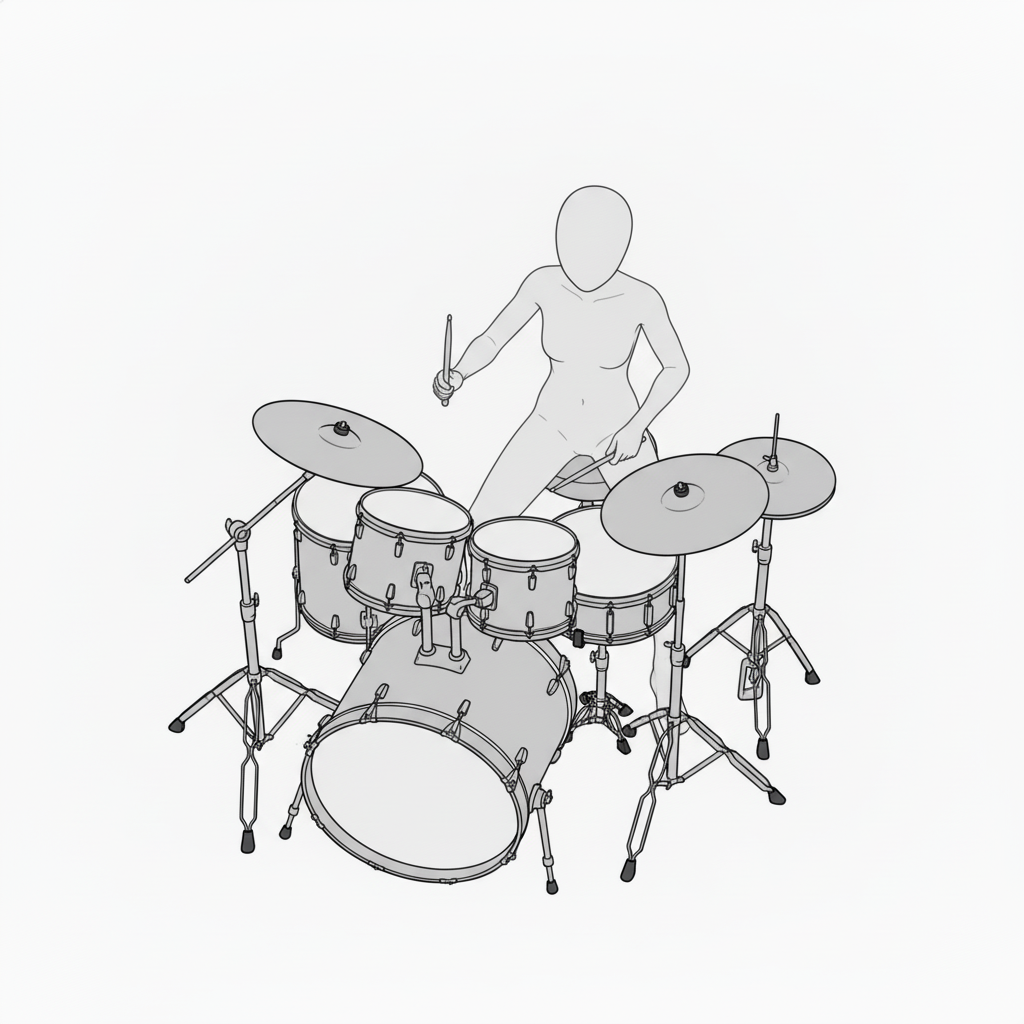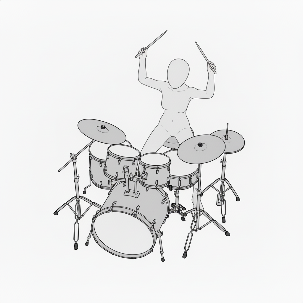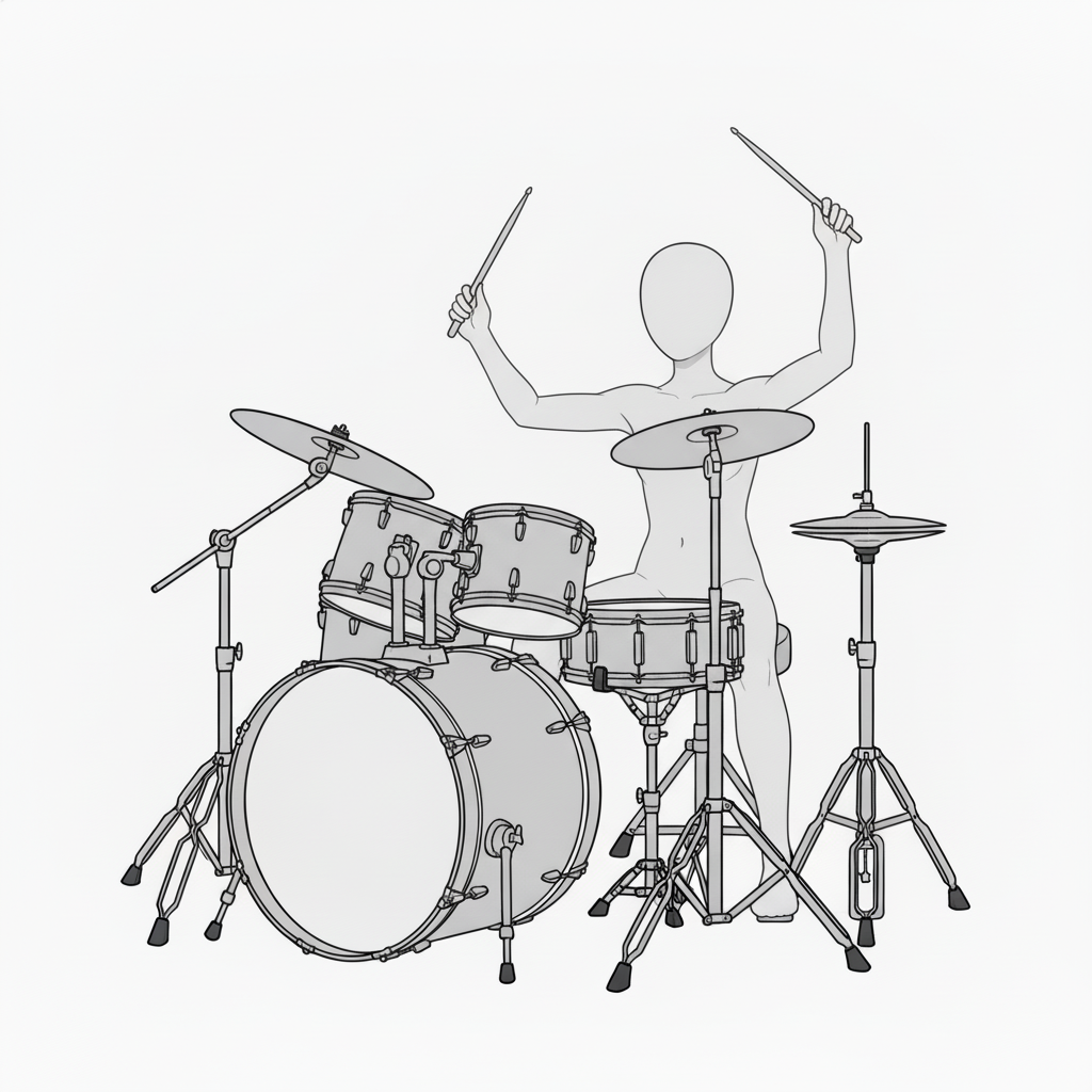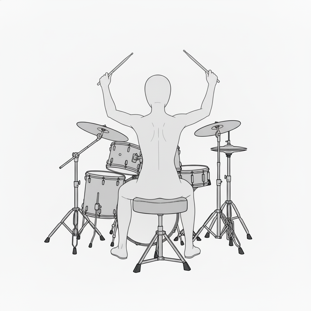スネアとハイハットを軸に安定したフォームで叩く基本ポーズです。
