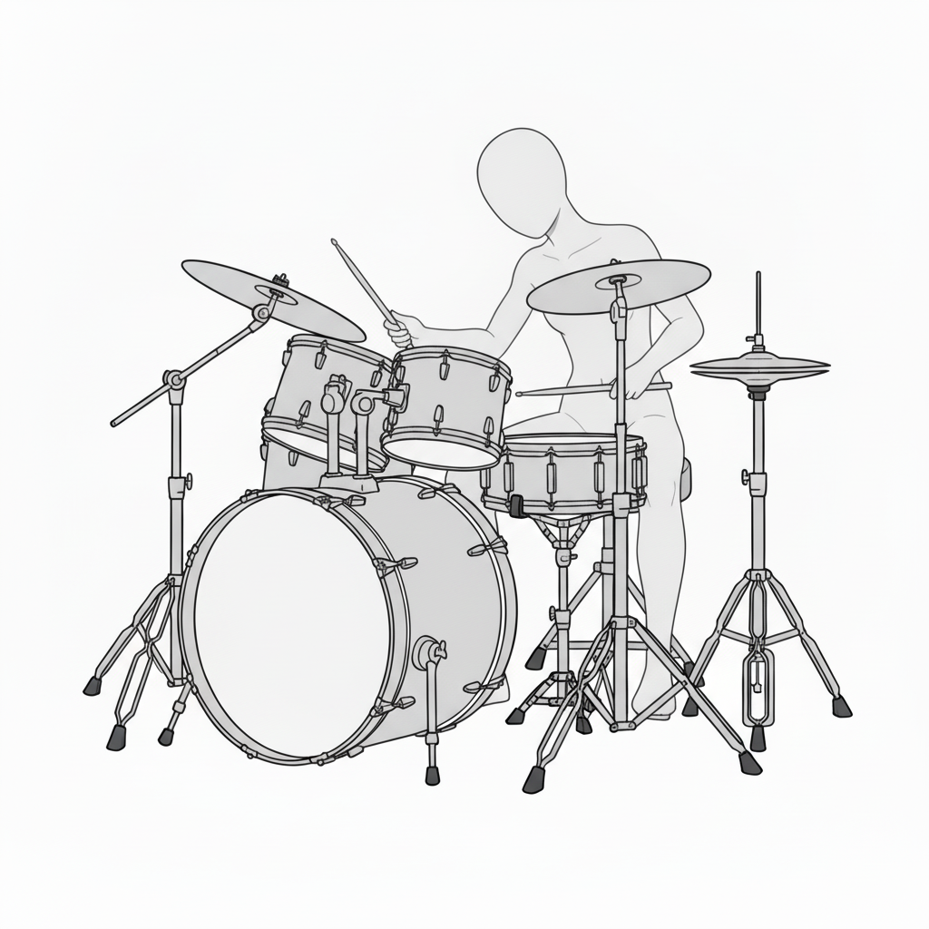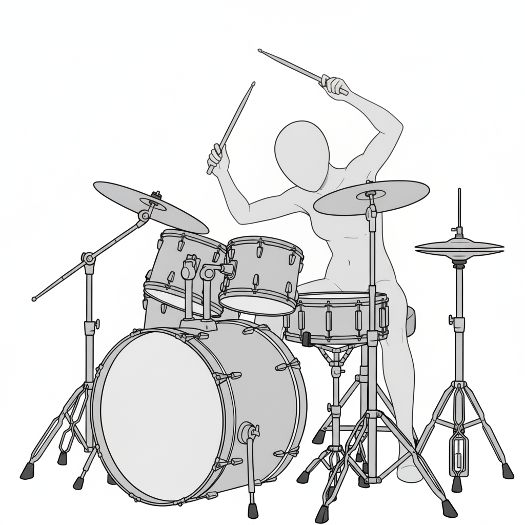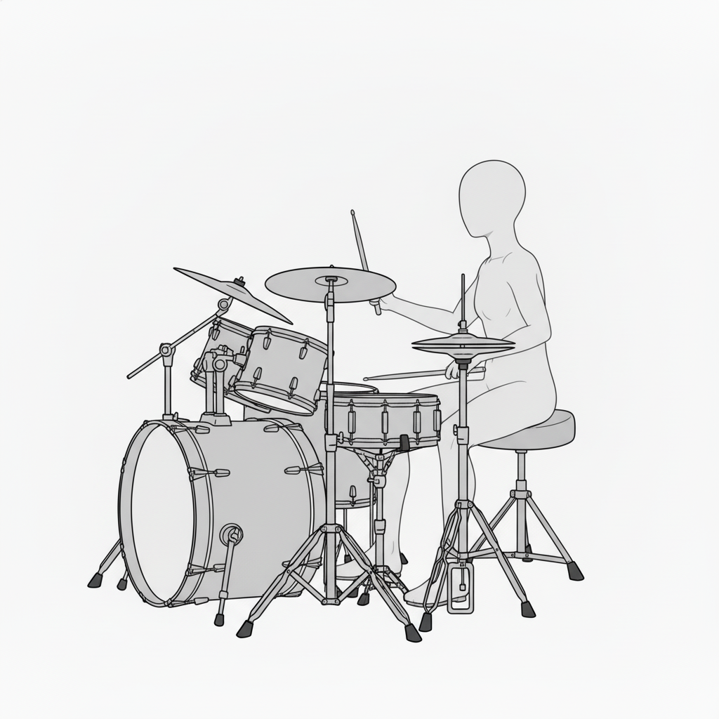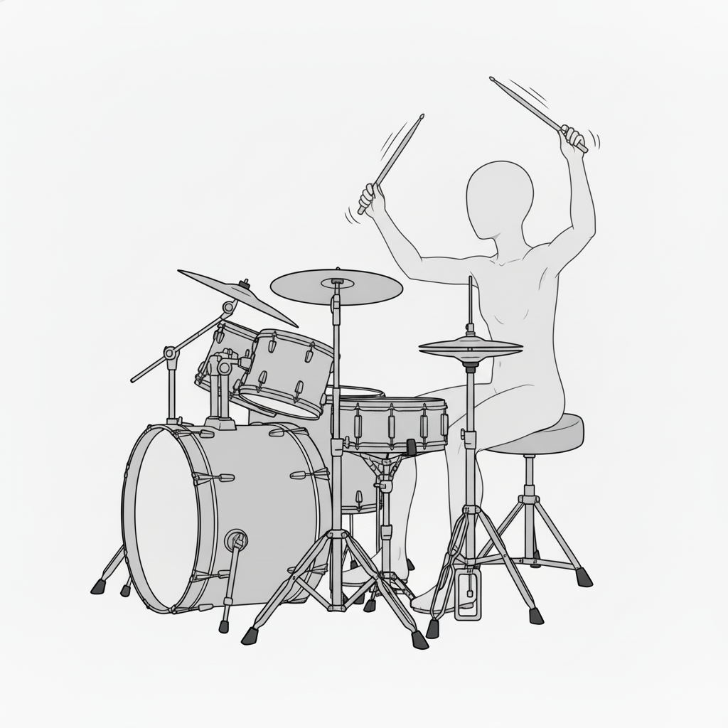 スネアとハイハットを軸に安定したフォームで叩く基本ポーズです。