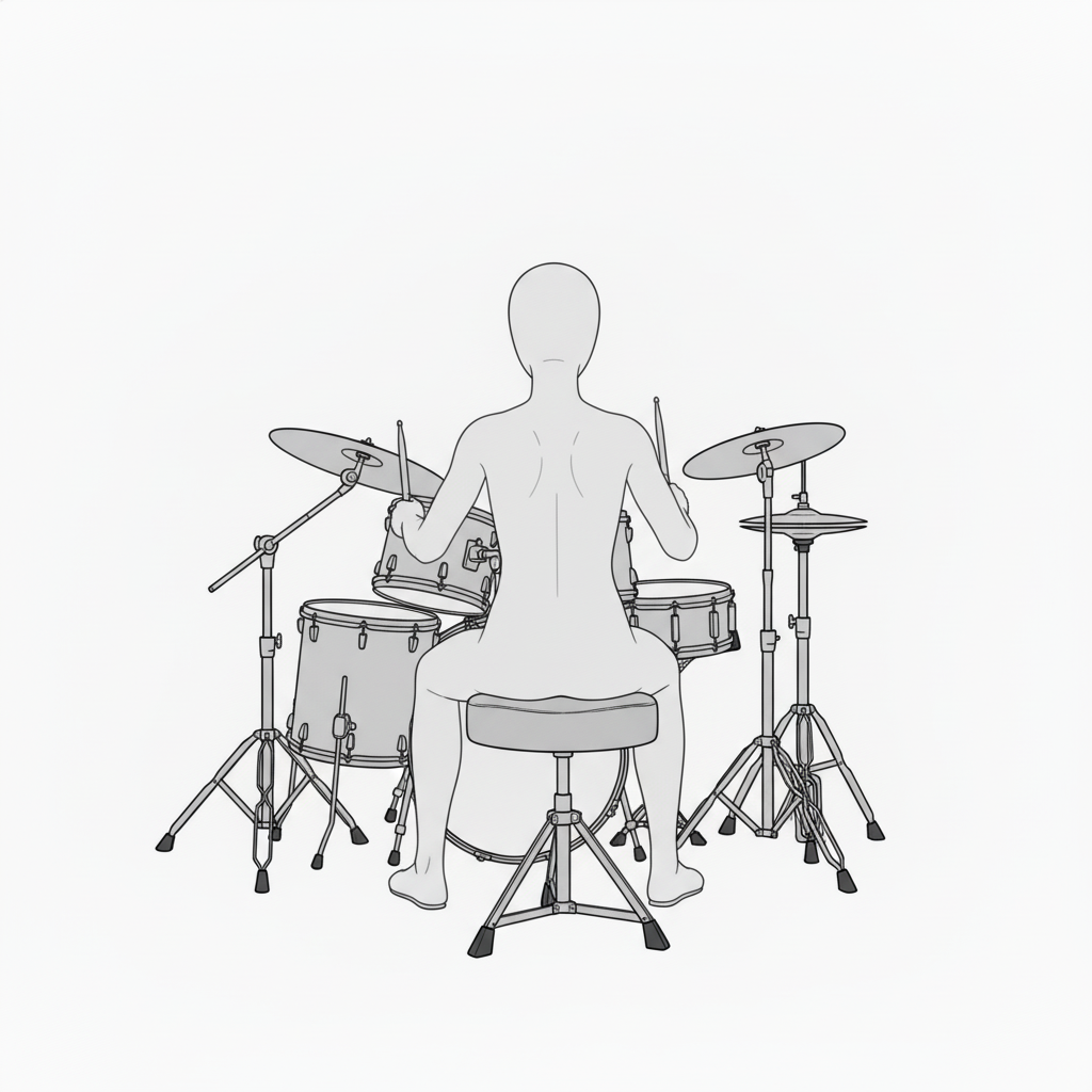 女性ドラマーの後ろ姿|セット全体がわかる基本フォーム