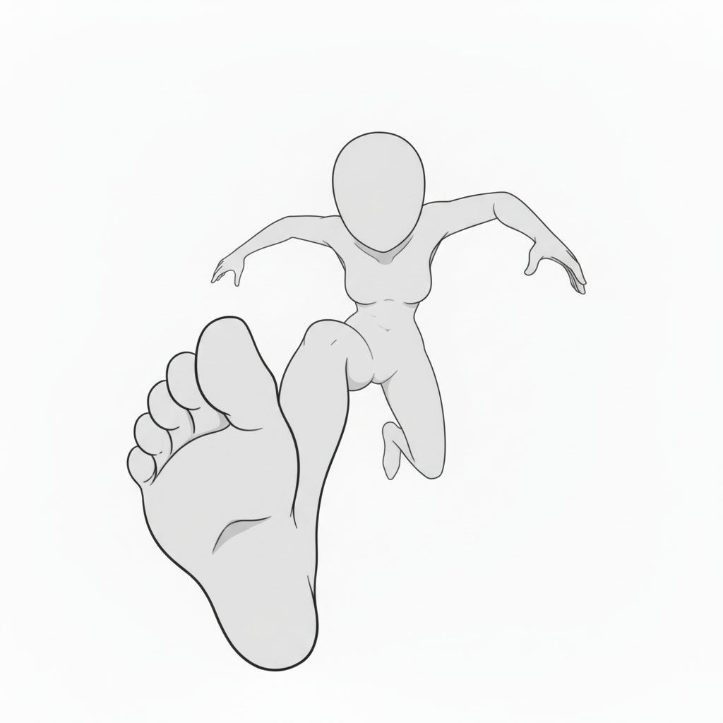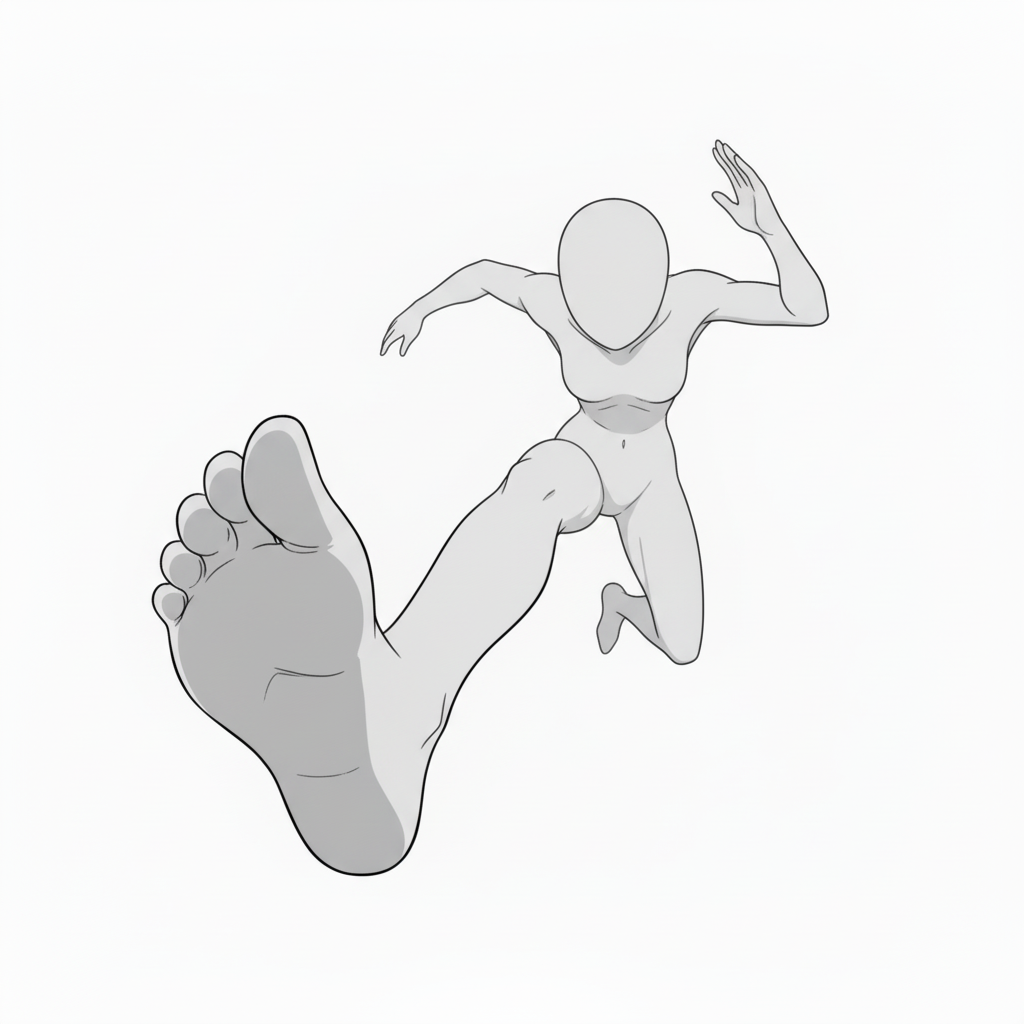 飛び出し構図(足元強調)