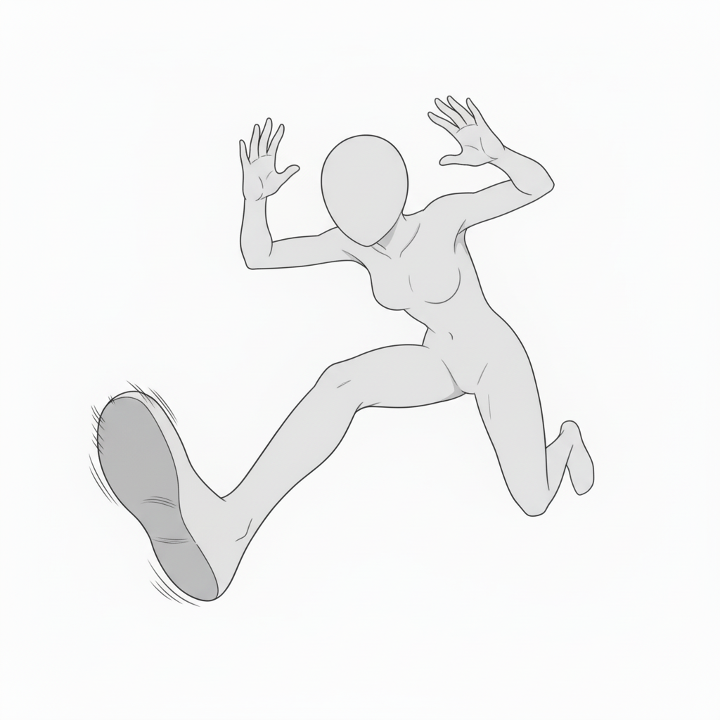 勢いよく駆け出す姿勢。アクションシーンやスポーツ描写に汎用的。