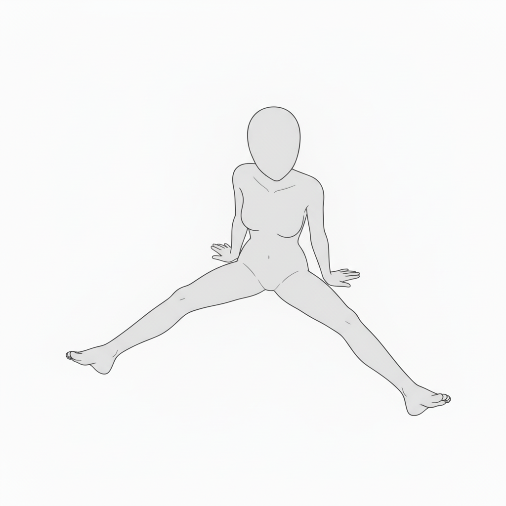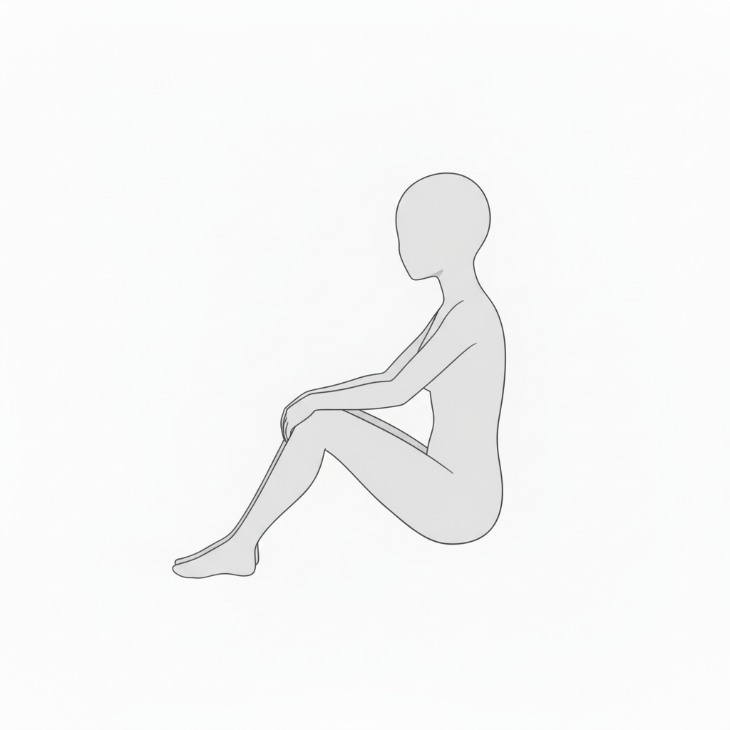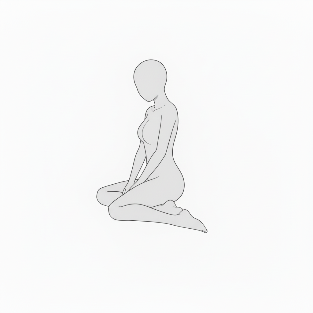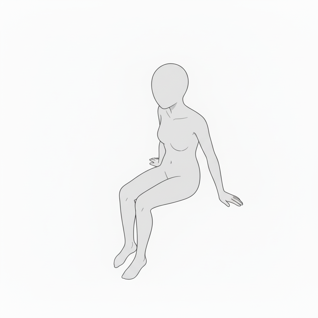 横から見た自然な座り姿勢。立体感を出すポーズ練習におすすめ。