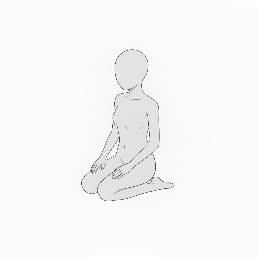 落ち着きや瞑想シーンに最適な、シンプルで安定感のある座り姿。