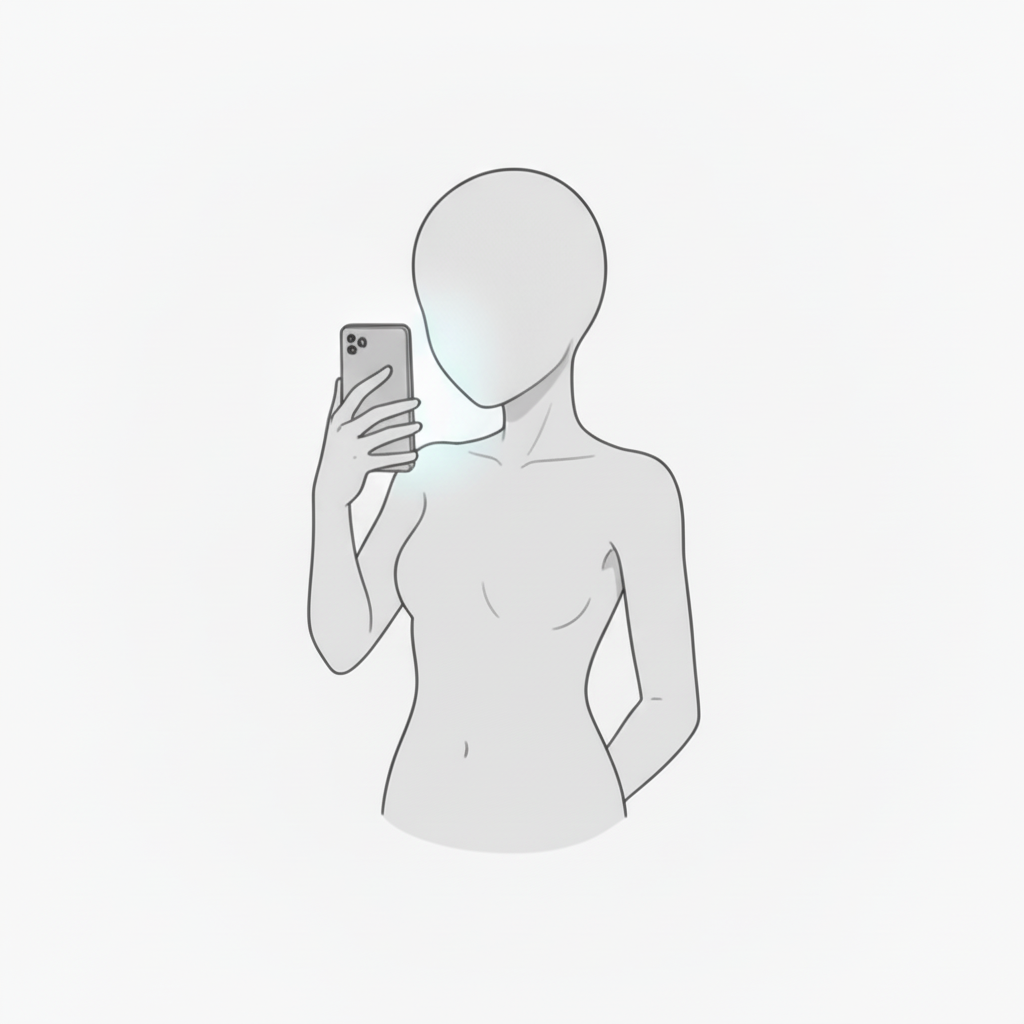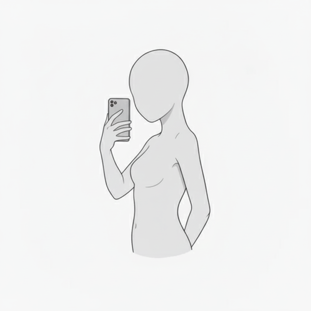 スマホを片手に見つめるポーズ|セルフィー・通話向け素材