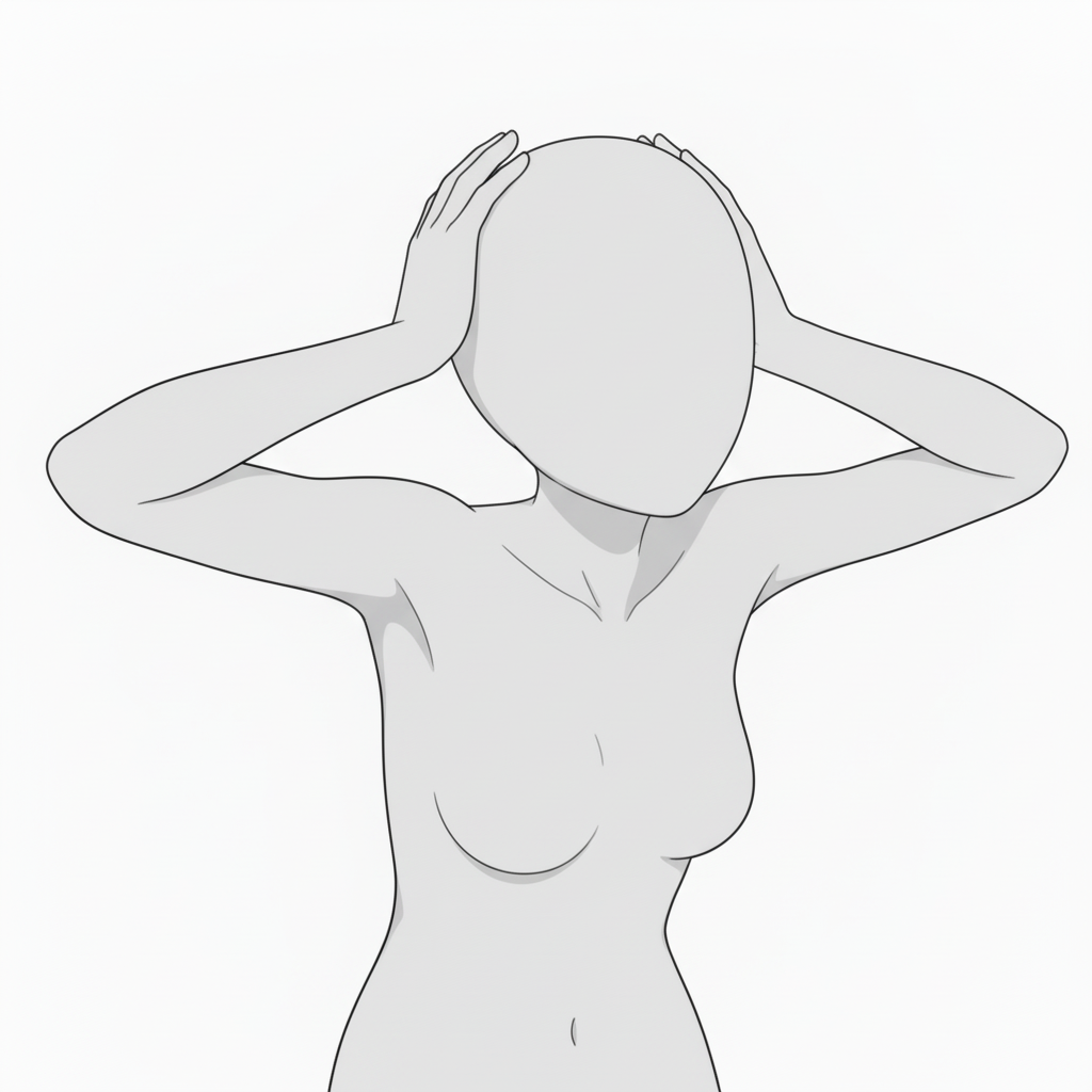 衝撃や困惑を表す定番ポーズ。感情シーンや演出素材として使いやすい。