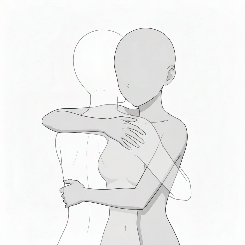 包み込むハグ|癒やしと慰めの女性ポーズ