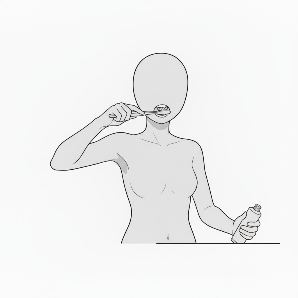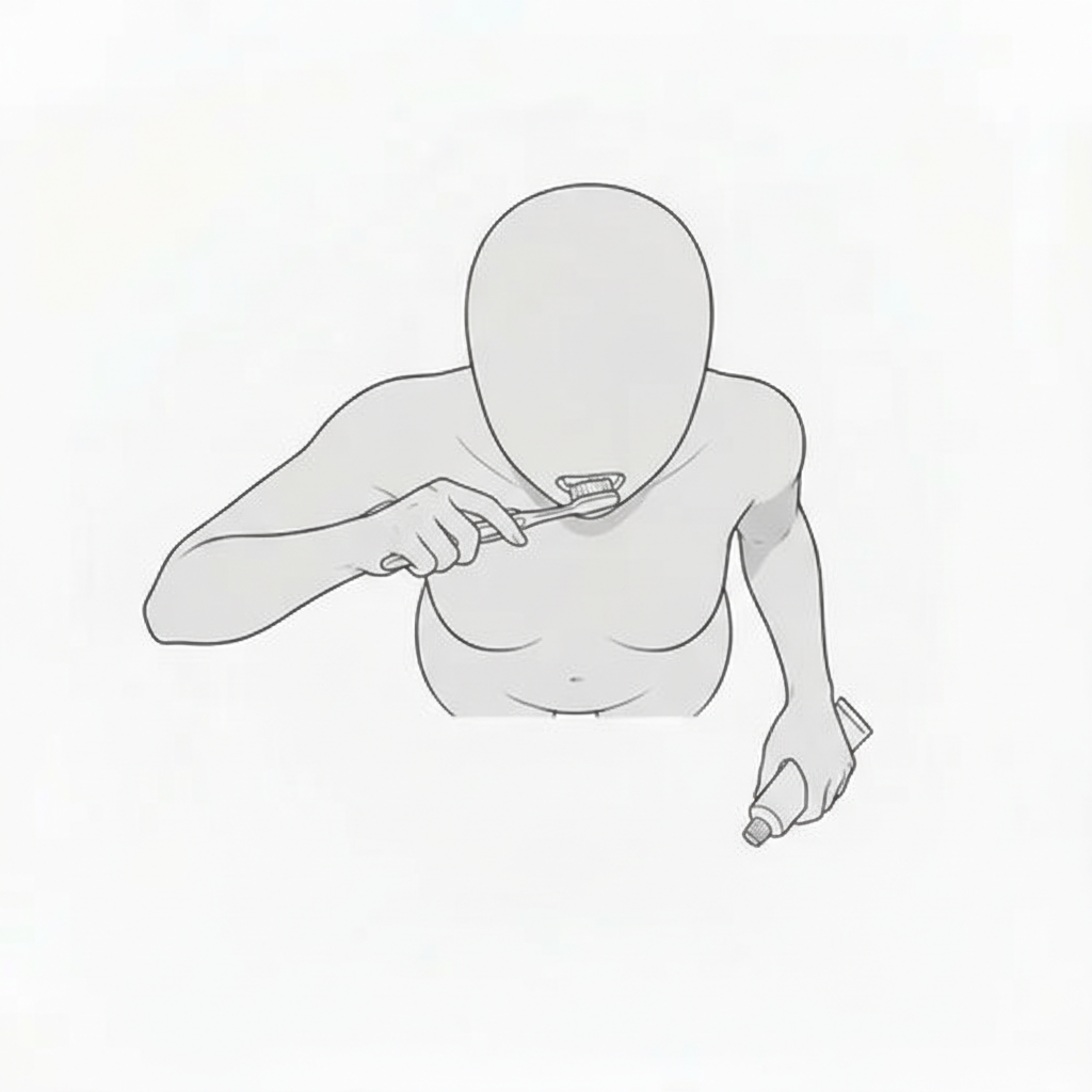 上からのアングルで歯を磨く様子を表現した俯瞰ポーズの素材です。