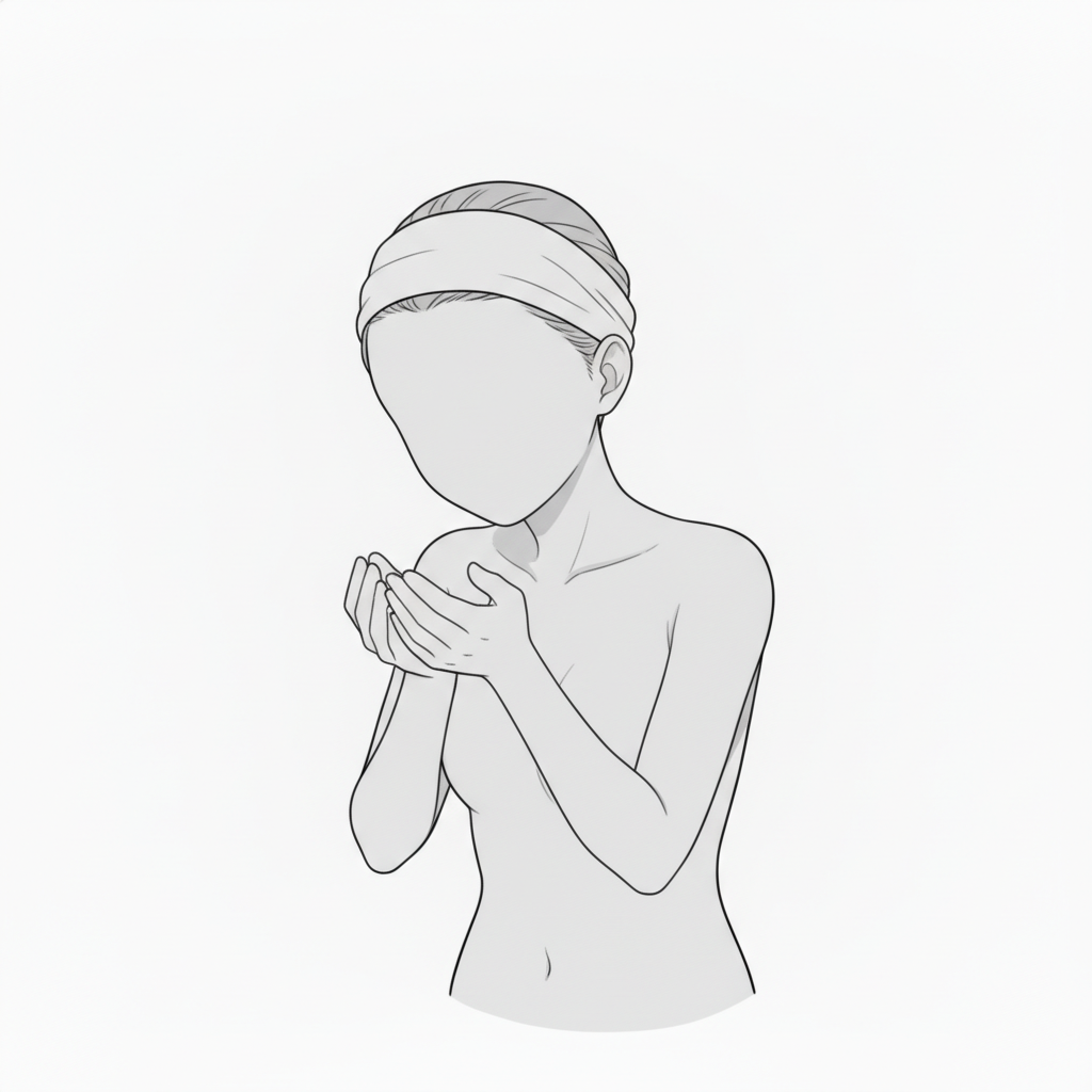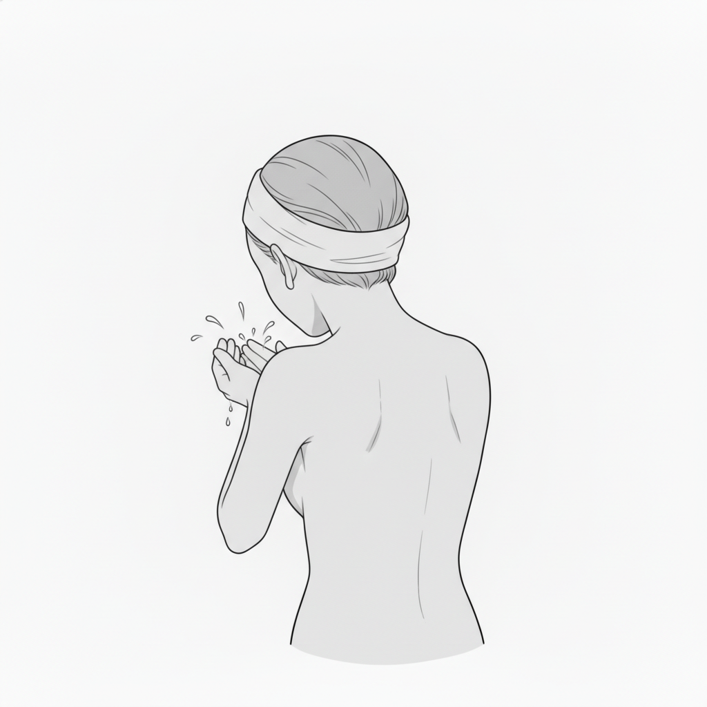 水をすくって顔を洗う女性の後ろ姿|洗面動作のイラスト素材