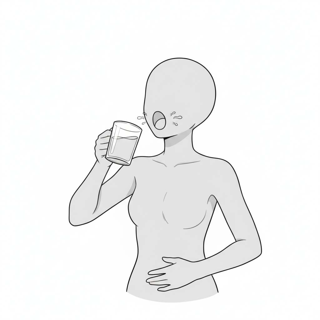 コップの水で口をゆすぐ瞬間を描いた正面ポーズの素材です。