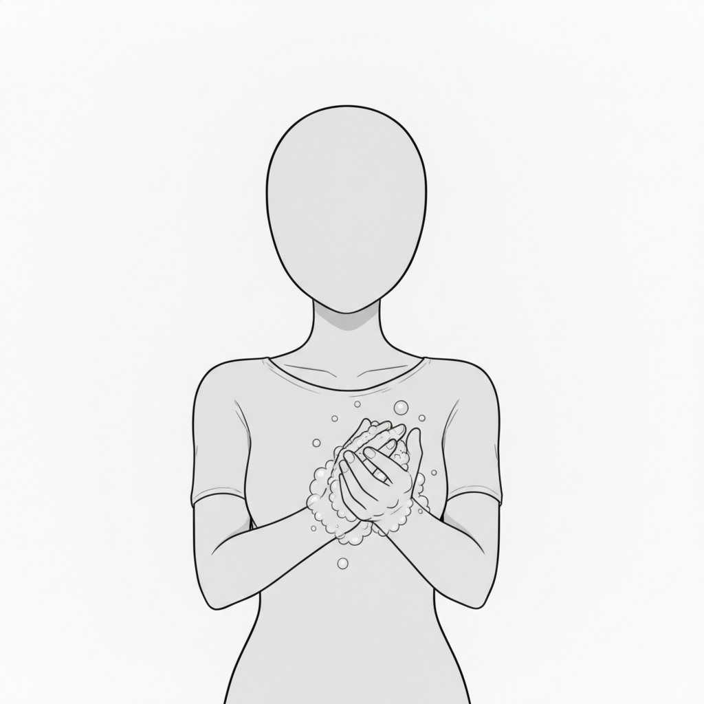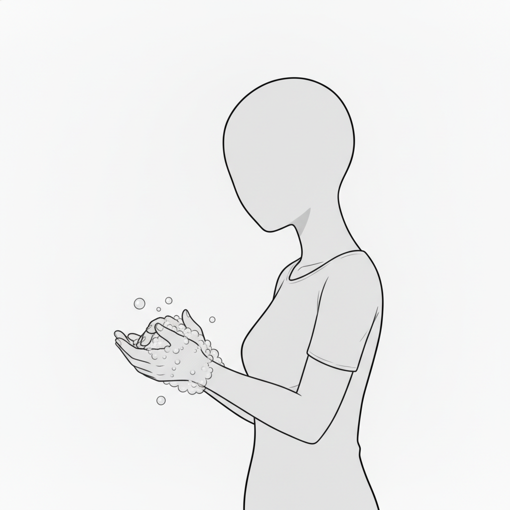 横向き構図で手を泡立てながら洗う様子を描いた衛生イメージ素材です。