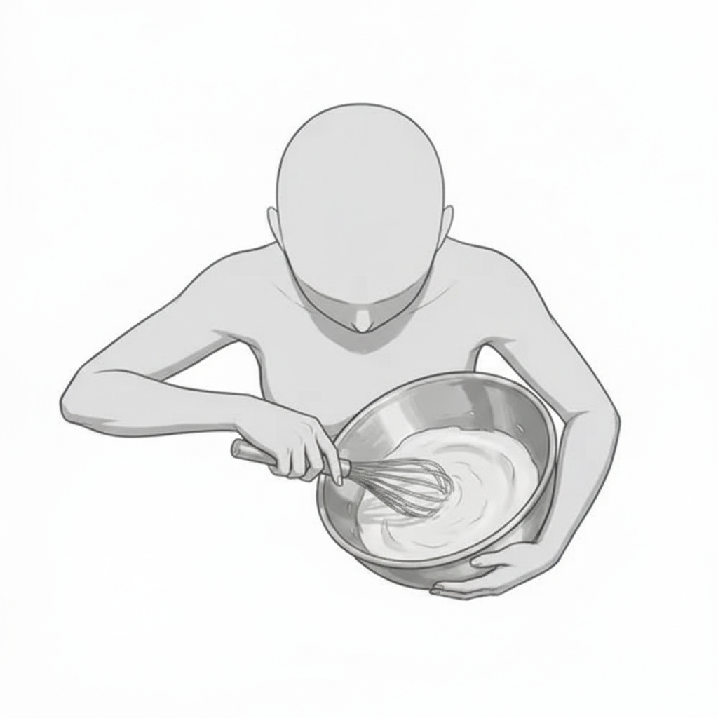 上から見た攪拌作業ポーズ|お菓子作り工程イラスト