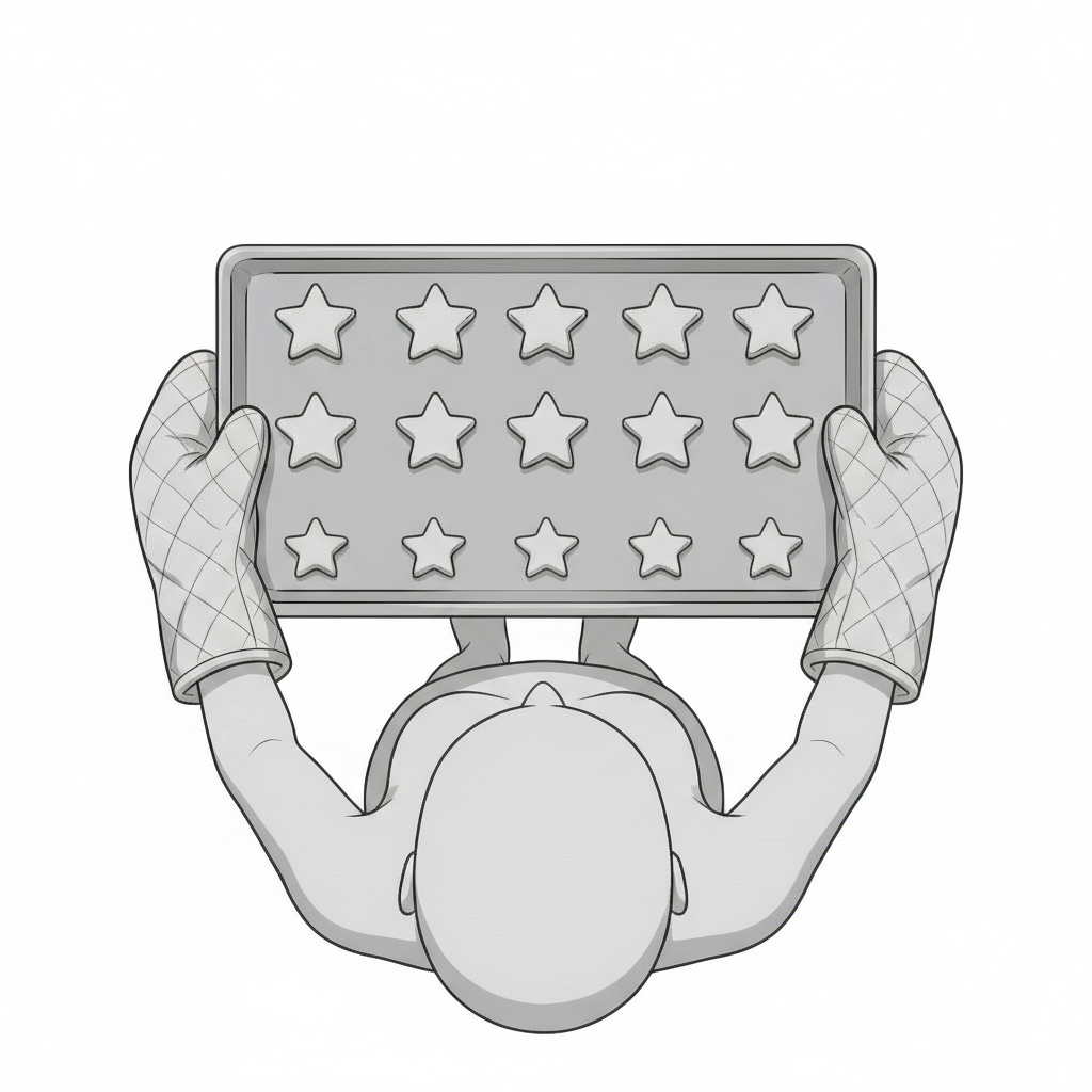 星型クッキーの配置が分かりやすく、レシピ解説や工程図に適した視点です。