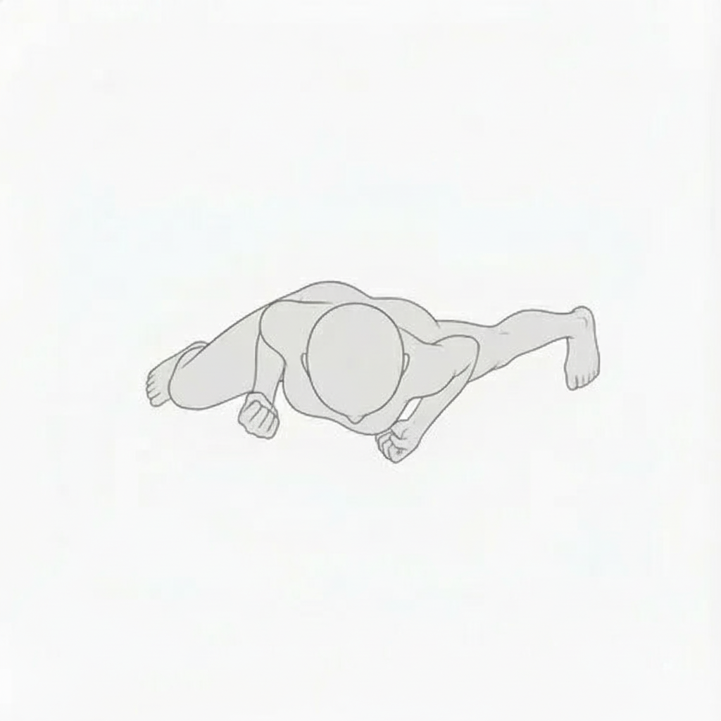 地面に近い低い姿勢で構える動作を描いており、実戦や回避動作の表現に向いています。