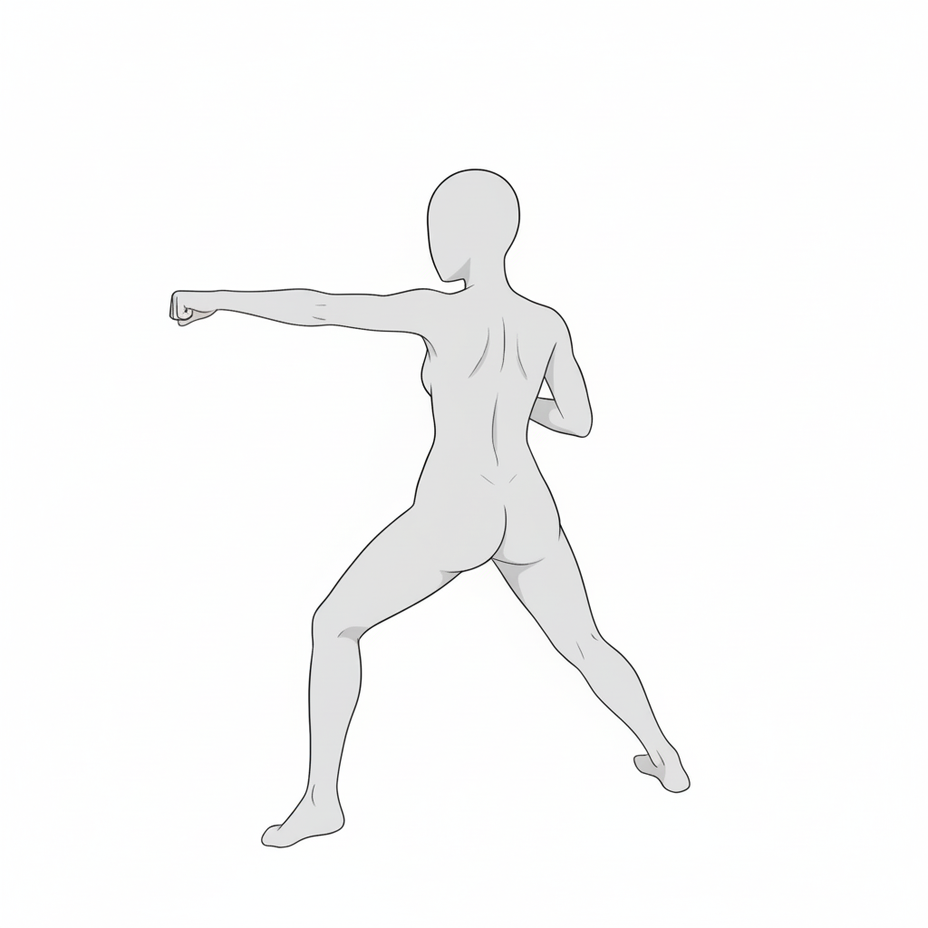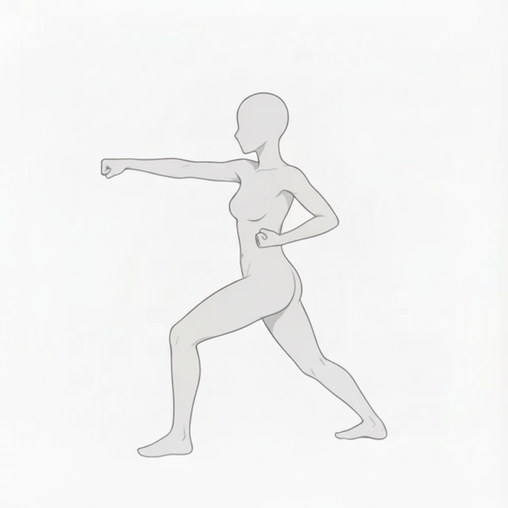 側面から見た突き動作を表現しており、動きの流れを自然に見せたい場面に便利です。
