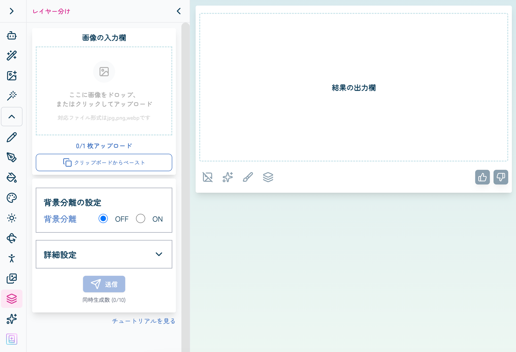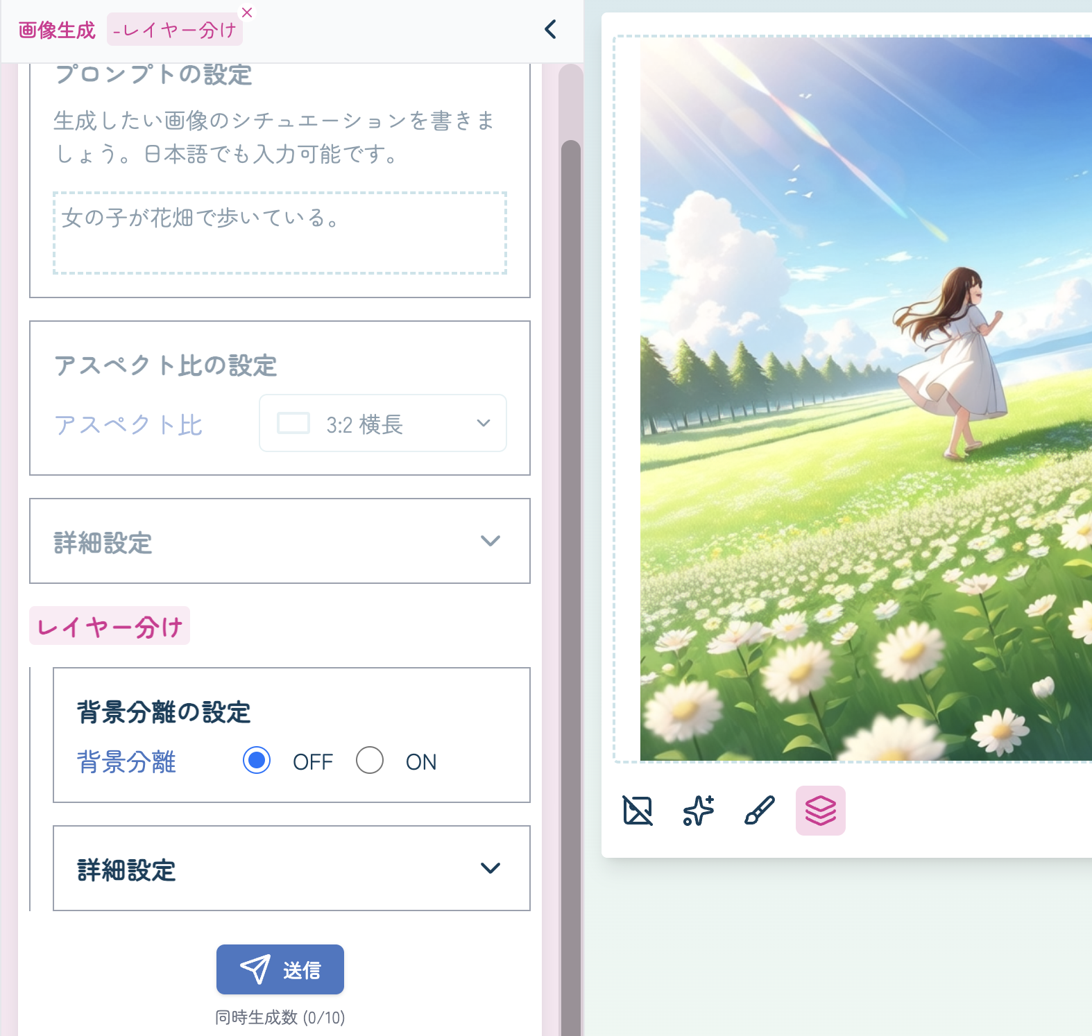 「レイヤー分け」の設定項目が追加されます。背景分離を設定し、送信ボタンを押します。