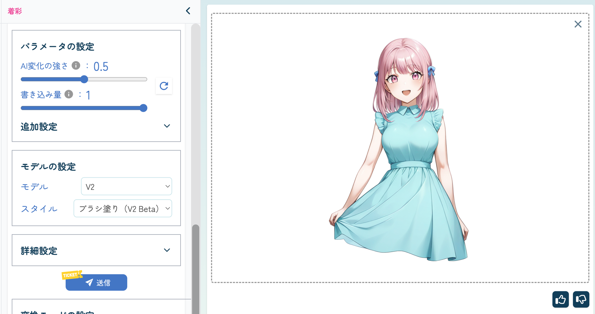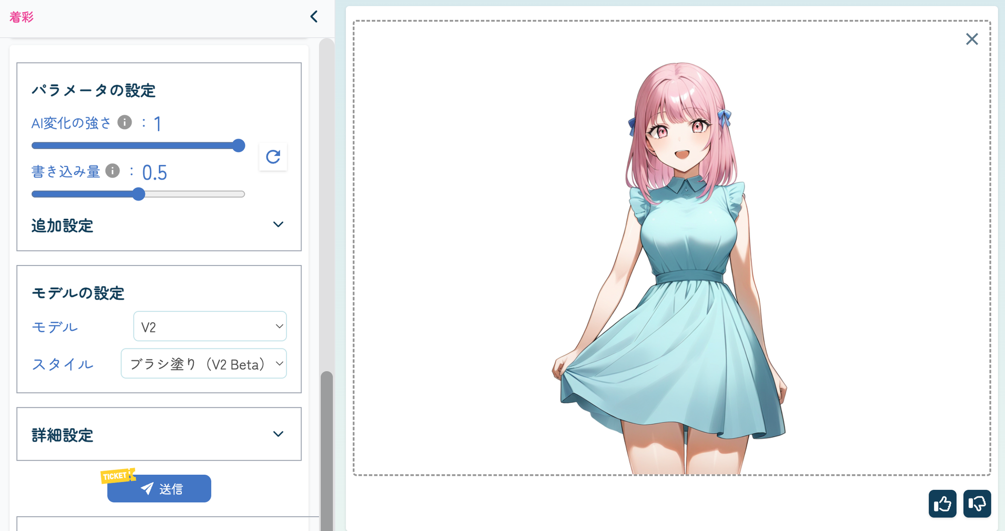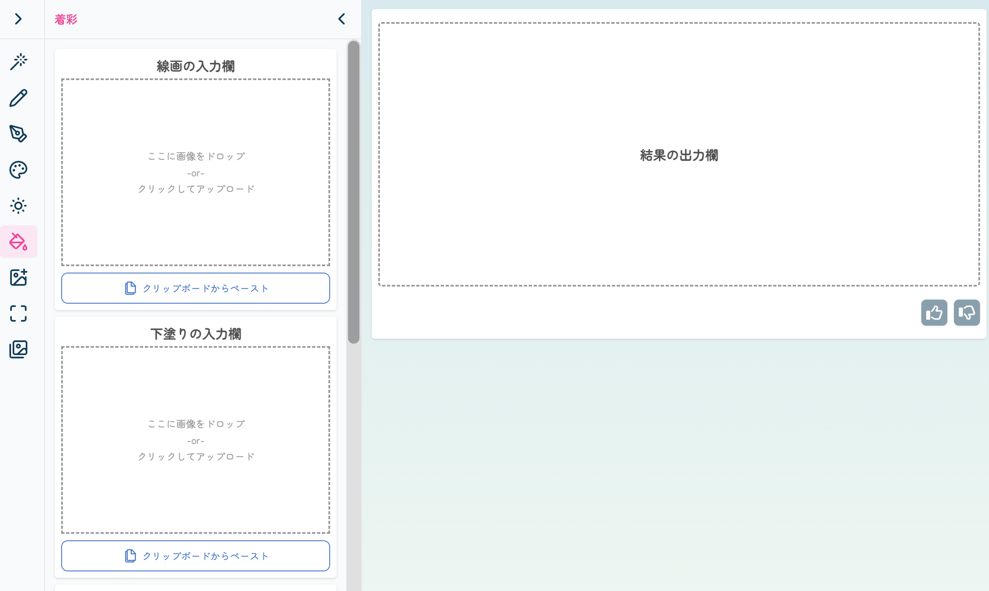 線画画像と下塗り画像をアップロードするだけで、すぐにイラストの完成形を確認することができます。