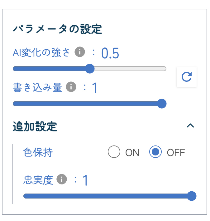 各パラメータを調整することで、出力の雰囲気を変えることができます。